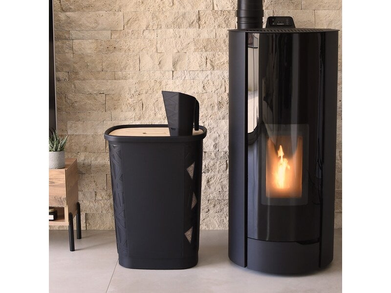 en plastique avec couvercle en bois, capacité : 45 kg pour le stockage des granulés de bois, avec roulettes Dimensions : (L)495 x (P)379 x (H)664 mm (010482 NO SX4)Données importantes :Version : 70 litresDimensions : (L )495 x (P)379 x (H)664 mmCouleur : noirLargeur de l'emballage en mm : 495Ver