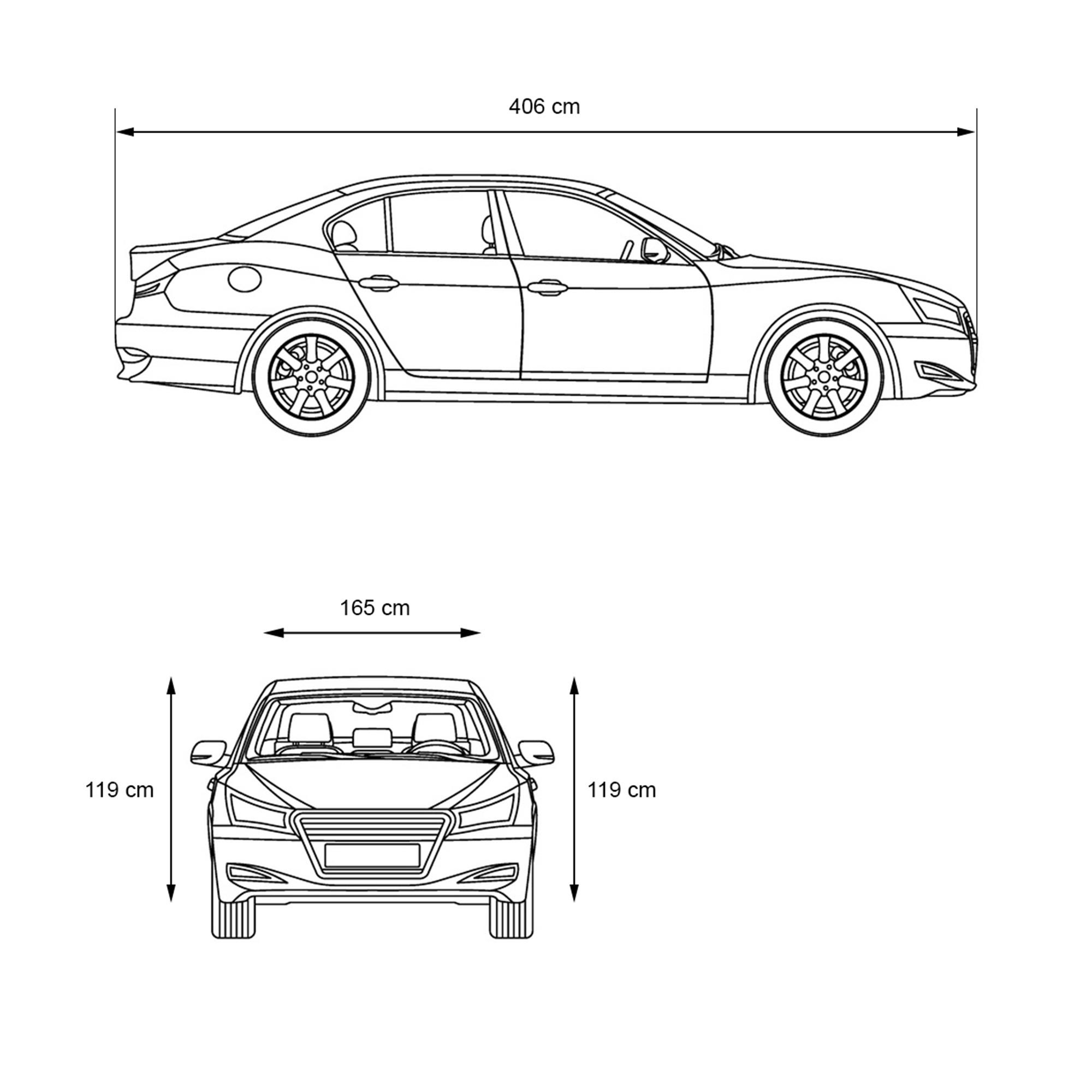 La taille S (406 x 165 x 119 cm) est adaptée aux petites voitures telles que VW Lupo, Seat Arosa, Mini Couper, MB Smart ou similaires.