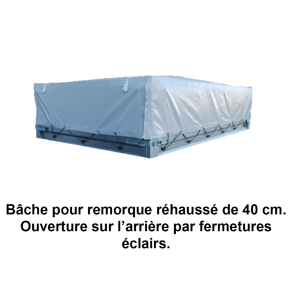 Bâche remorque Erka Nlc 2323 réhaussé 40cm - 231 x 131 x 50 cm - PVC 640 g/m² Gris - Fabrication Français