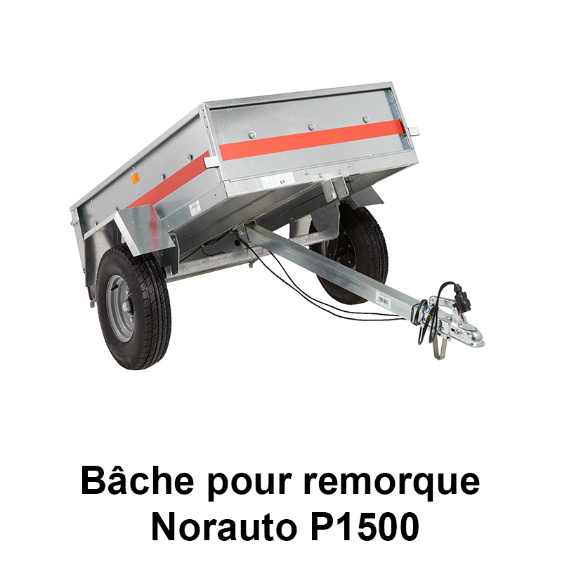 Bâche de protection pour remorque Norauto modèle P1500. Dimensions de la bâche : 158cm (longueur) x 102cm (largeur) x 7cm (hauteur). Toile imperméable et très résistante (640gr/m²) de couleur grise. La bâche est doublée tout le tour, renforcée dans les angles et possède des œillets inox. Pour la fixation, nous vous fournissons du sandow (câble élastique).