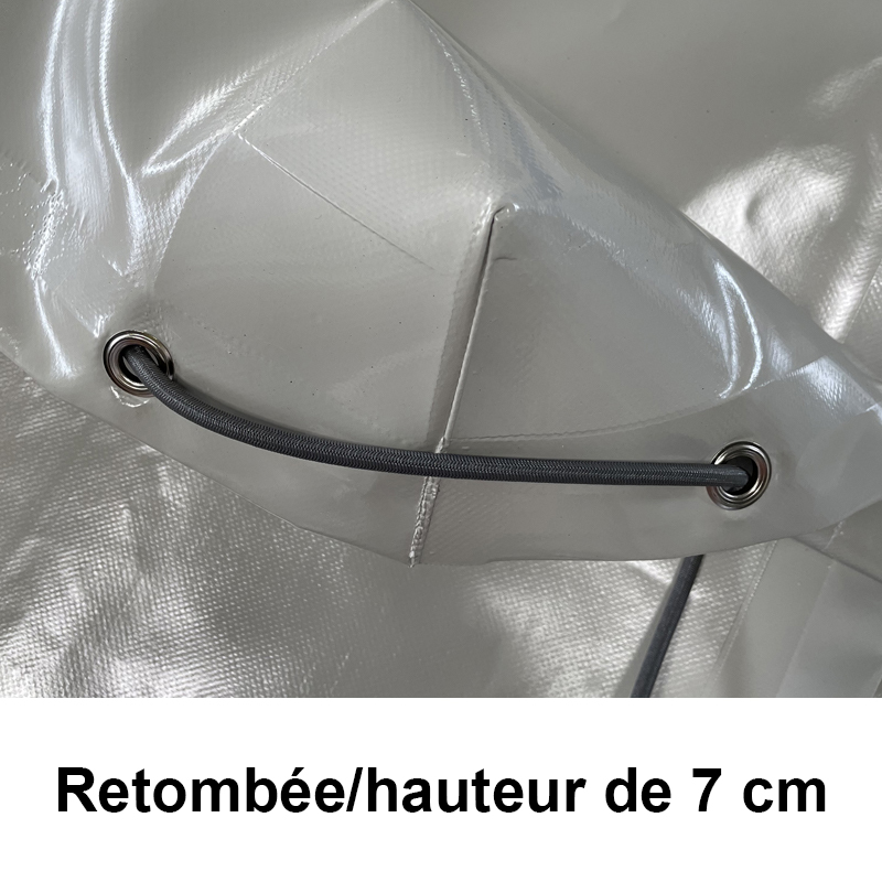 La toile est confectionnée par une entreprise française qui est spécialisée dans le domaine de la confection sur-mesure depuis de nombreuses années et bénéficie de machines modernes : machine découpe numérique, soudeuse haute fréquence, machine à coudre professionnelle, etc...
