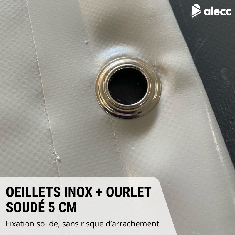 – Fini les bâches qui se déchirent trop vite : Renforts aux angles, ourlet doublé et œillets solides : cette bâche est pensée pour durer, même avec un usage régulier ou professionnel.