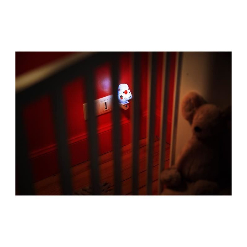 Une veilleuse bon plan ! Automatique : s'allume la nuit et s'éteint le jour (cellule photoélectrique). Lumiere intense pour rassurer et guider dans l'obscurité. Economie d'énergie et longue durée de vie (LED : 100 000 h). Abat-jour vissé et ne chauffant pas pendant l'utilisation.