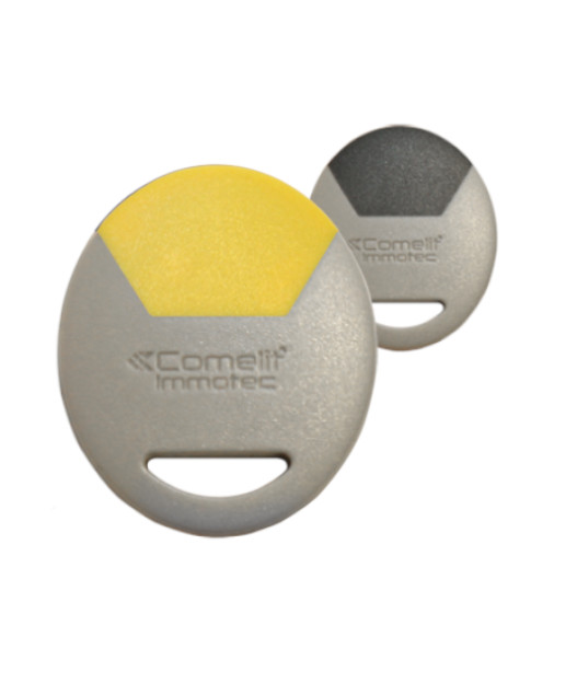 Badge MIFARE format porte clé gris/jaune - COMELIT - CLE/GJ