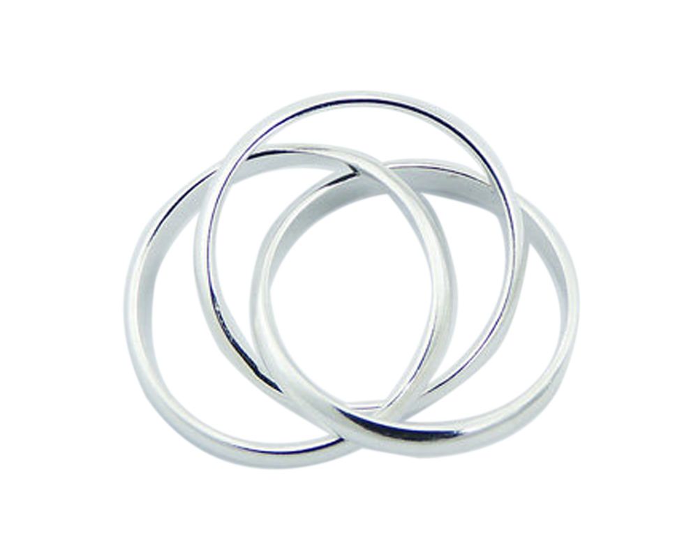 Bague en argent composée de 3 anneaux entrelacés. La signification de cette bague 3 anneaux est multiple. Pour certains, c'est tout le symbole de la fidélité, l'amour et l'éternité ou de l'amitié, pour d'autres, cette bague a une symbolique chrétienne. Vous pouvez y donner la signification qui vous plait, vous, votre conjoint, vos enfants... Largeur de chaque anneau : 2mm - Largeur totale de la bague : 0,7cm - Poids : 5gr