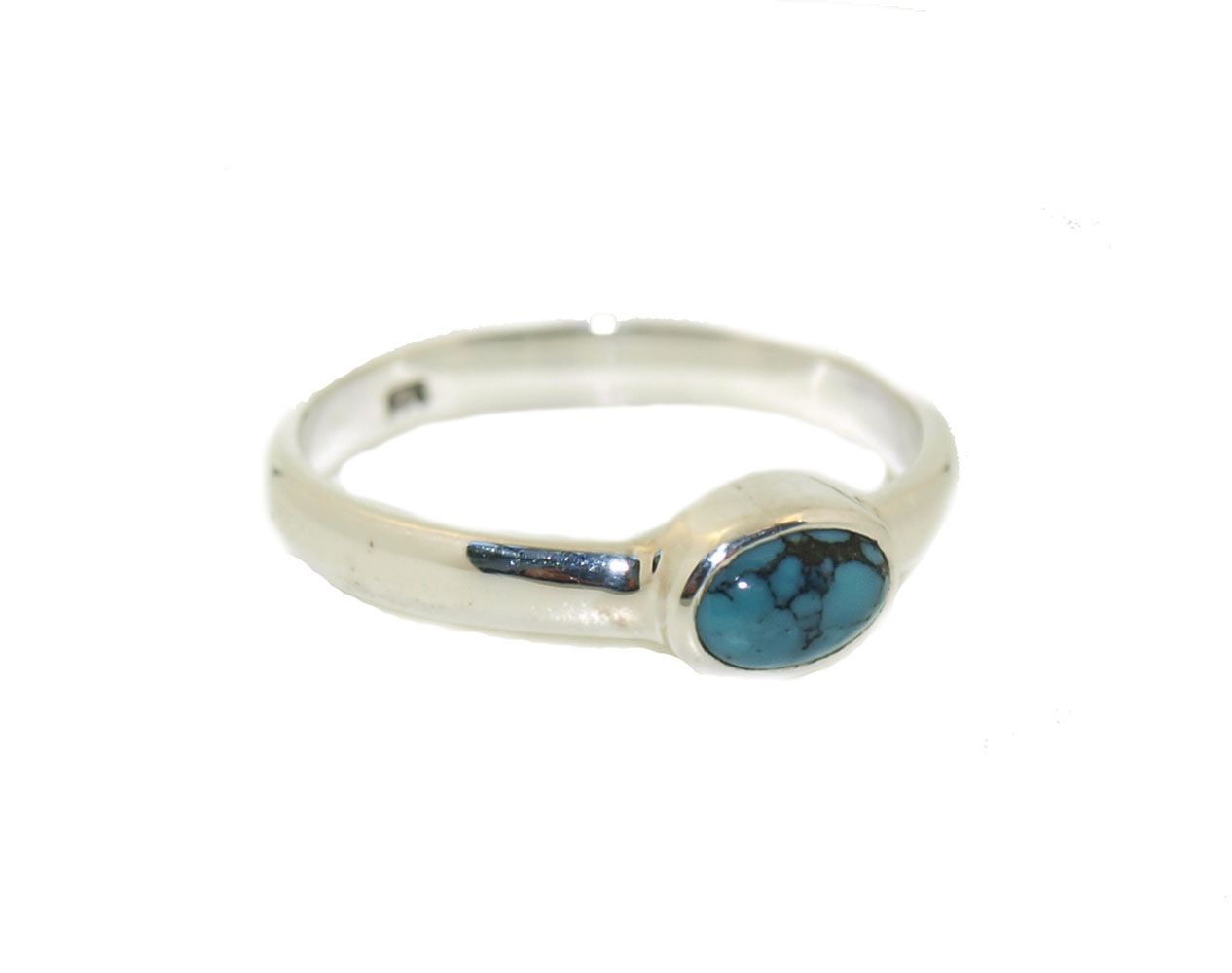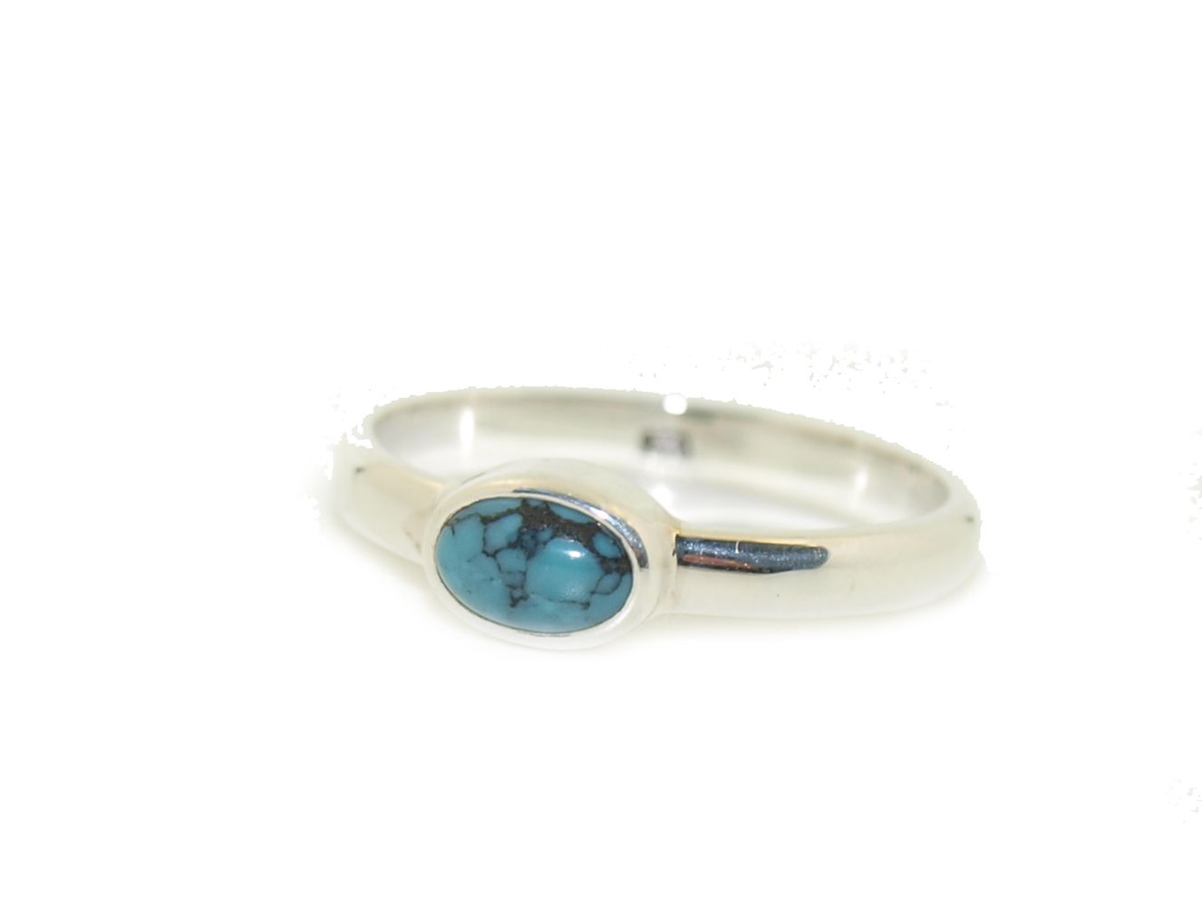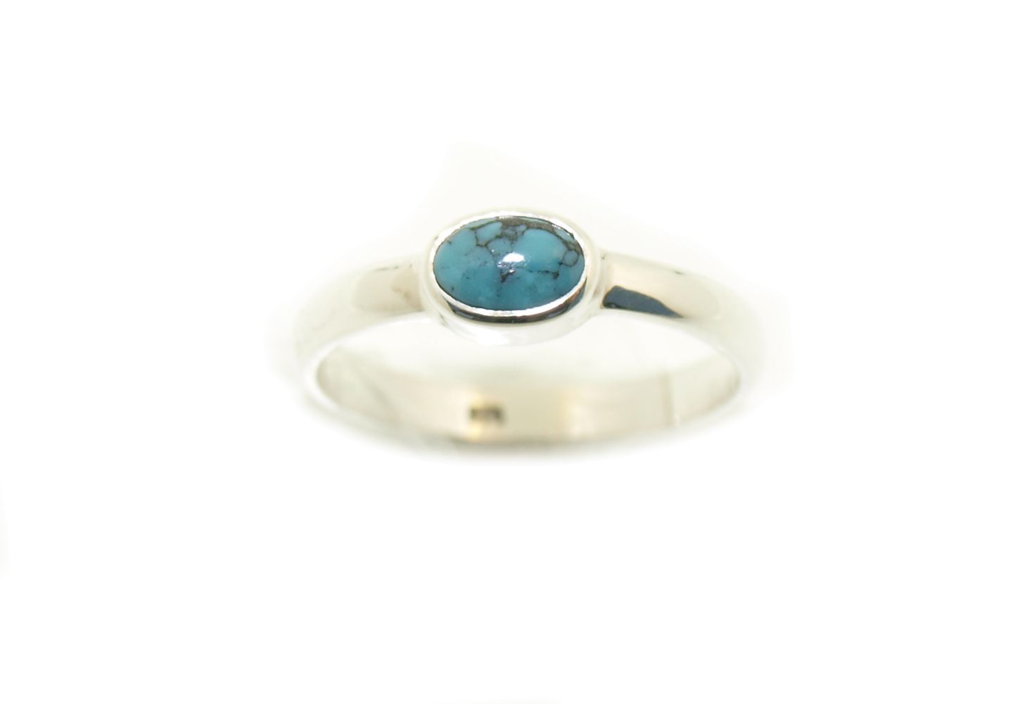 Bague argent pierre pour femme. Bague composée d'une pierre couleur bleu / vert opaque légèrement veinée. La pierre, est une turquoise de forme ovale. L'anneau de la bague est lisse. Cabochon : 0.7cmx0.5cm