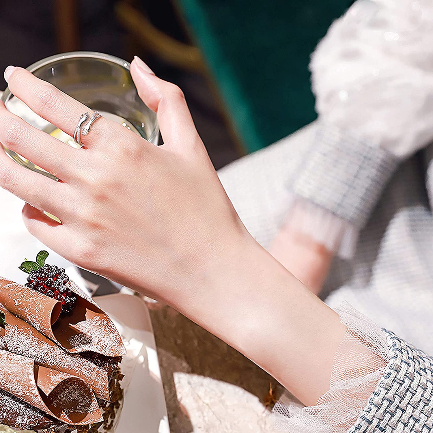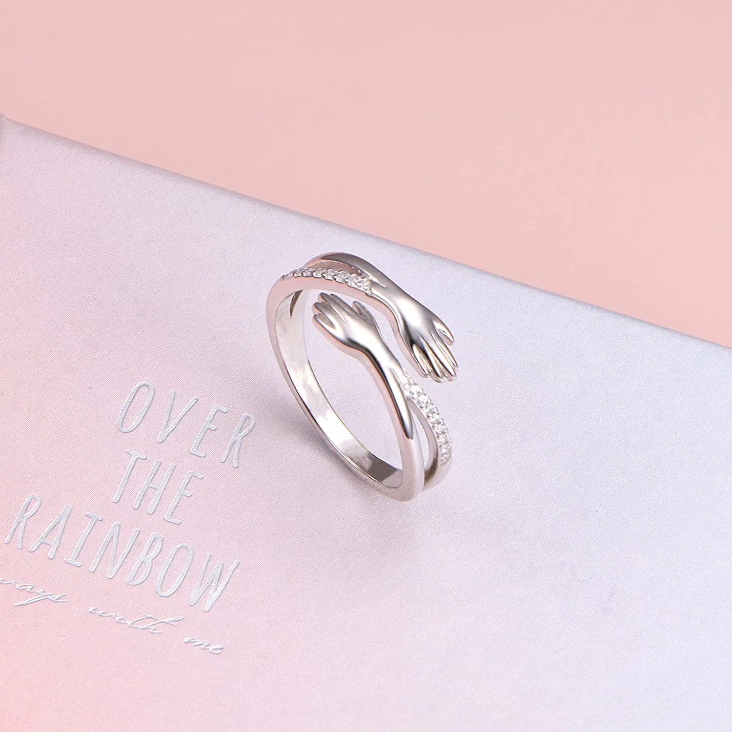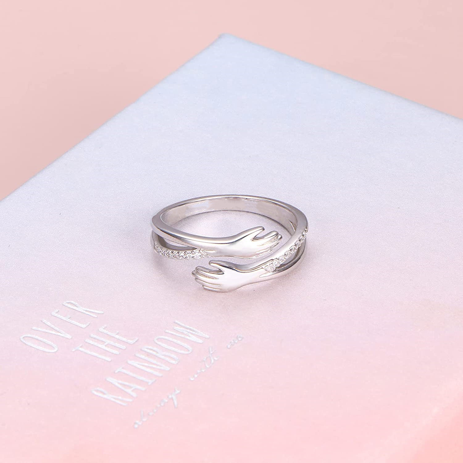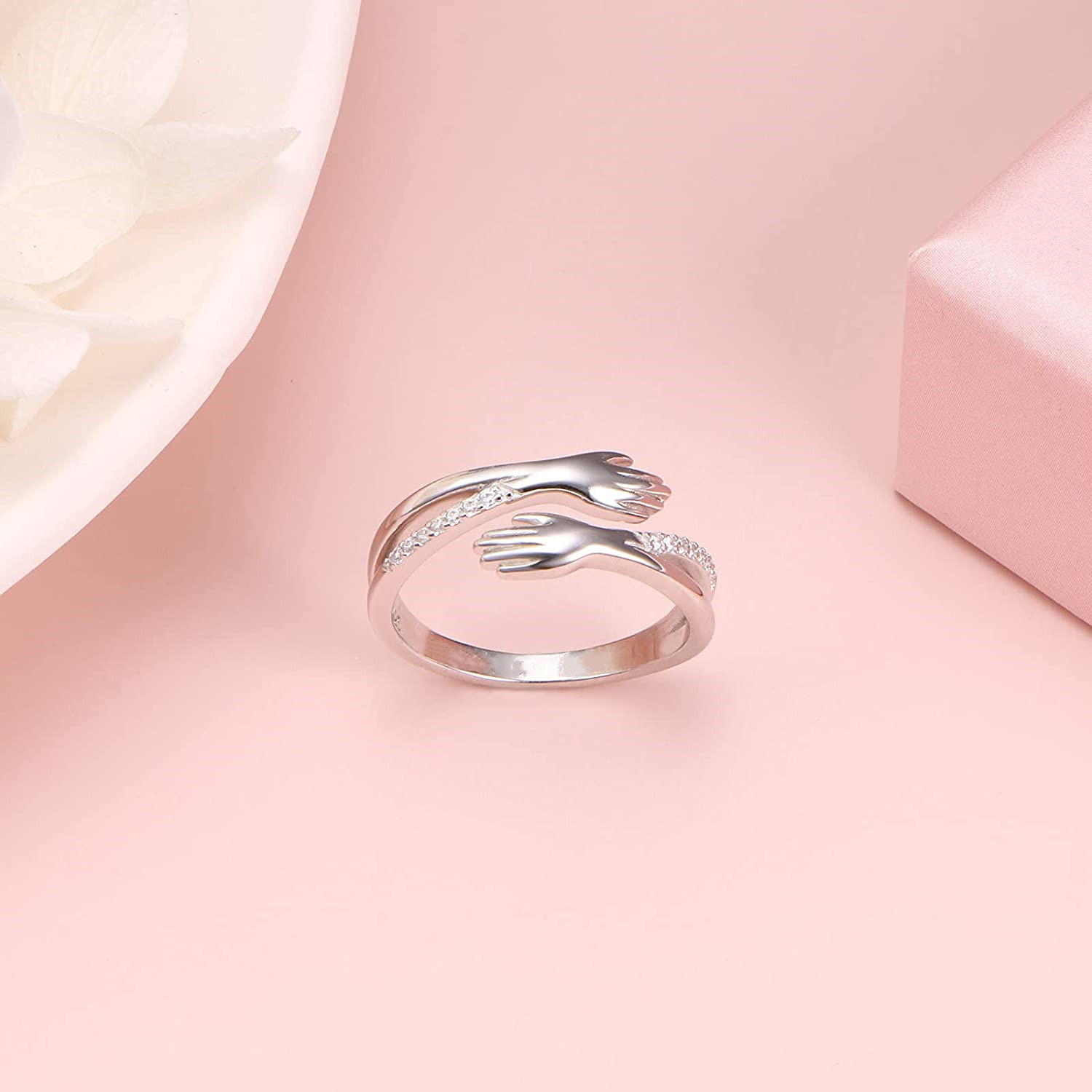 Haute qualité : Cette bague avec des mains qui s'embrassent est fabriquée avec du cuivre poli de haute qualité, pour offrir un confort confortable lorsque vous portez les bijoux. Les pierres de zircon étincelantes donnent à la bague un look élégant.