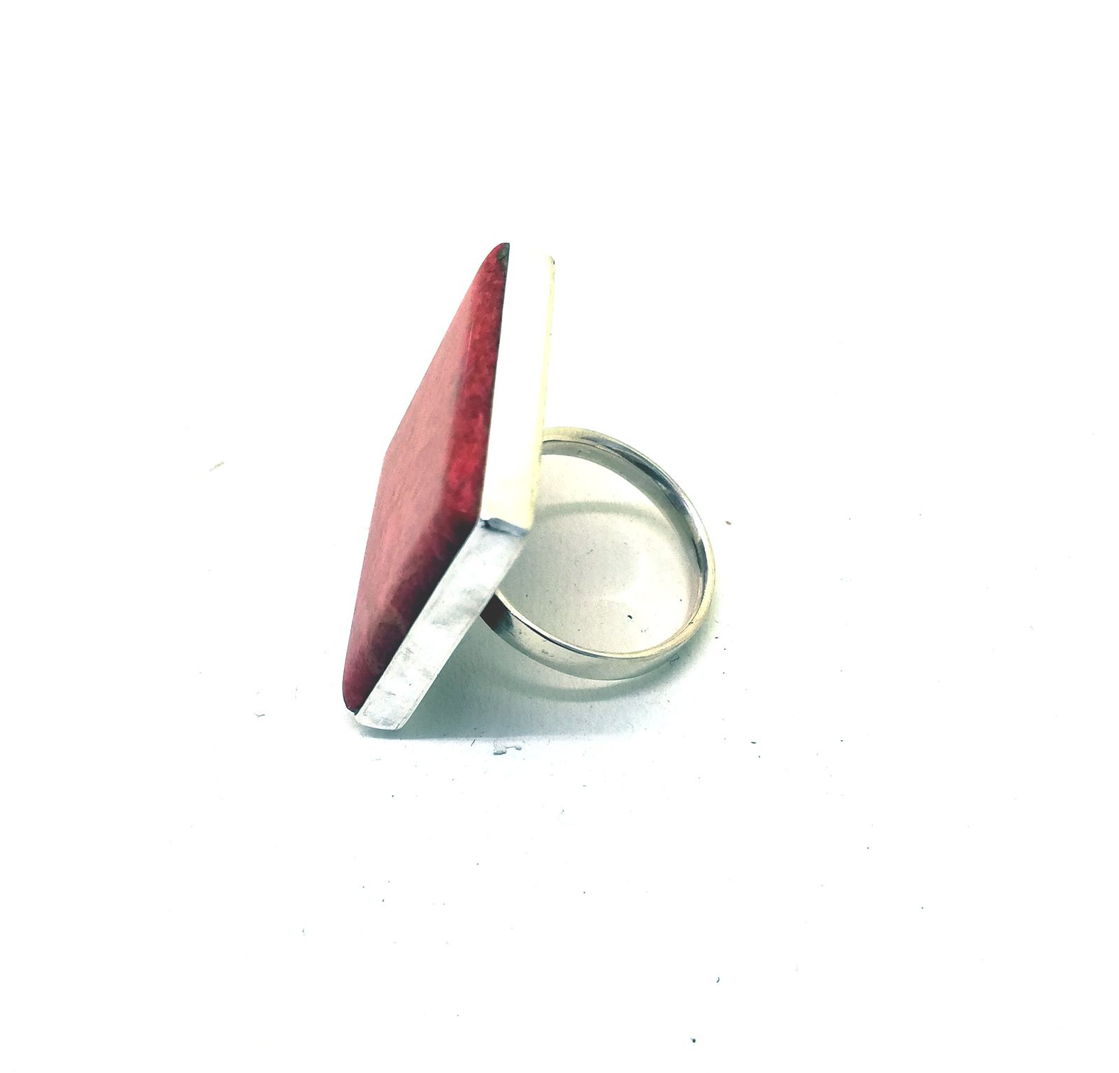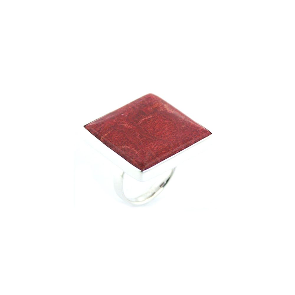 Osez l'originalité avec cette bague de forme carrée en argent et gorgone rouge (famille du corail). Très belle gosse bague carrée. Taille réglable Dimension : 26x27x26 mm - 11gr