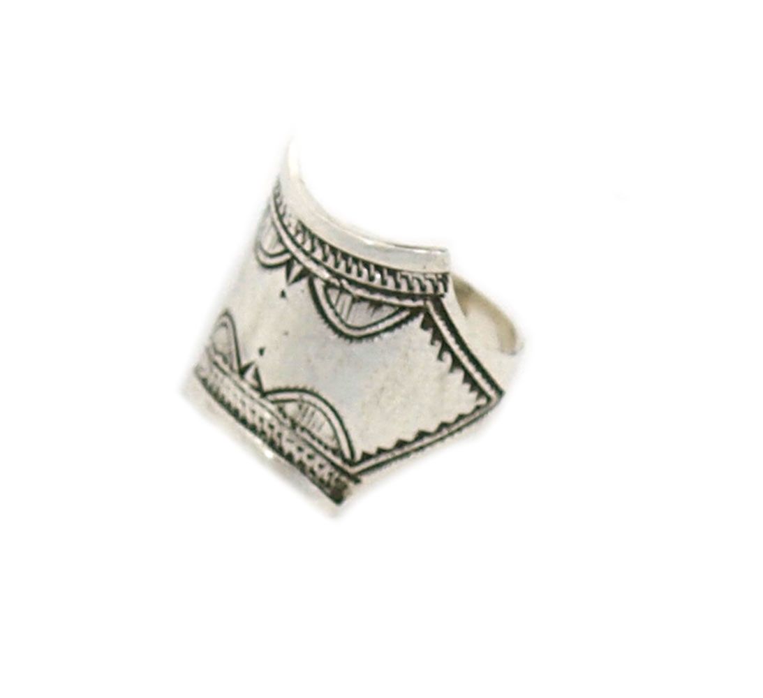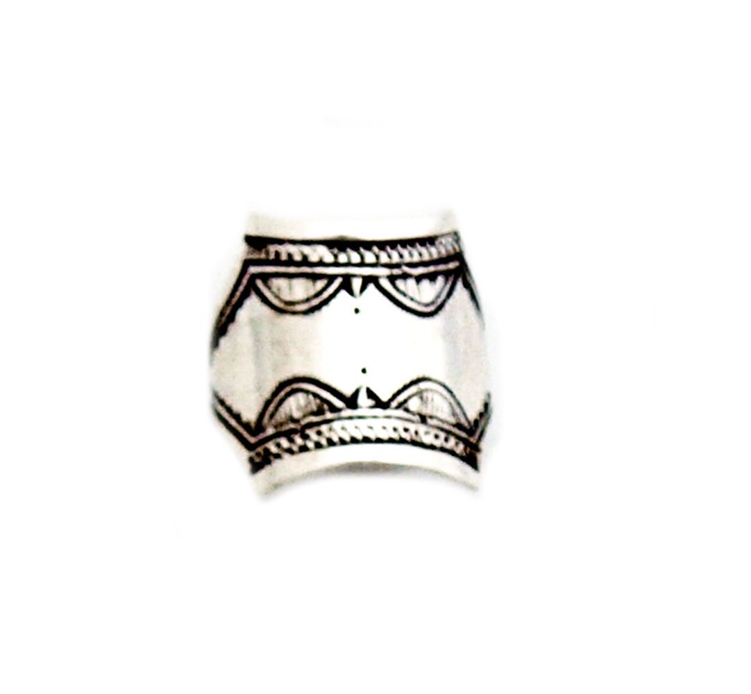 Jolie bague touareg rectangulaire en forme de chevalière pour homme ou femme en argent massif. Bague finement gravée de motifs touareg géométriques et  traditionnels. Forme carrée avec les coins qui remontent légèrement. Cette belle bague ethnique de l'artisanat africain du Niger est fabriquée dans la tradition touareg. Pour un look ethnic chic ! Taille largeur du devant : 2.2cmx 2.2cm - Poids : 5gr Bijoux Touareg Ethniques pour homme ou pour femme