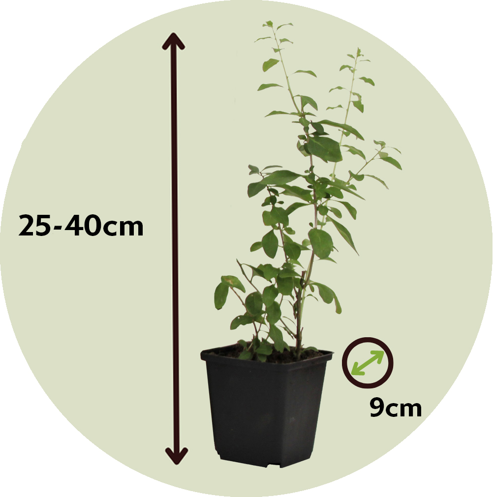 Les plantes ont une hauteur de 25 à 40 cm à la livraison, mesurée avec le pot de pépinière. Les plantes sont livrées dans un pot de pépinière d'un diamètre de 9 cm. Nombre de pièces : 3.