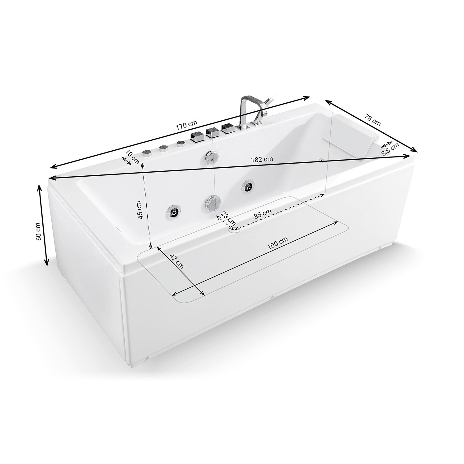 Libellé Baignoire Balnéo Sikinos white Jets 170 x78 x60 cm, by SPALINA
