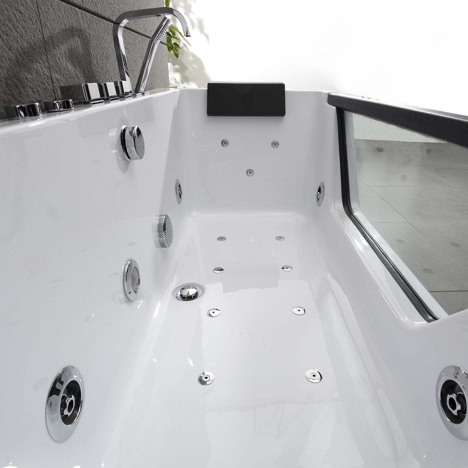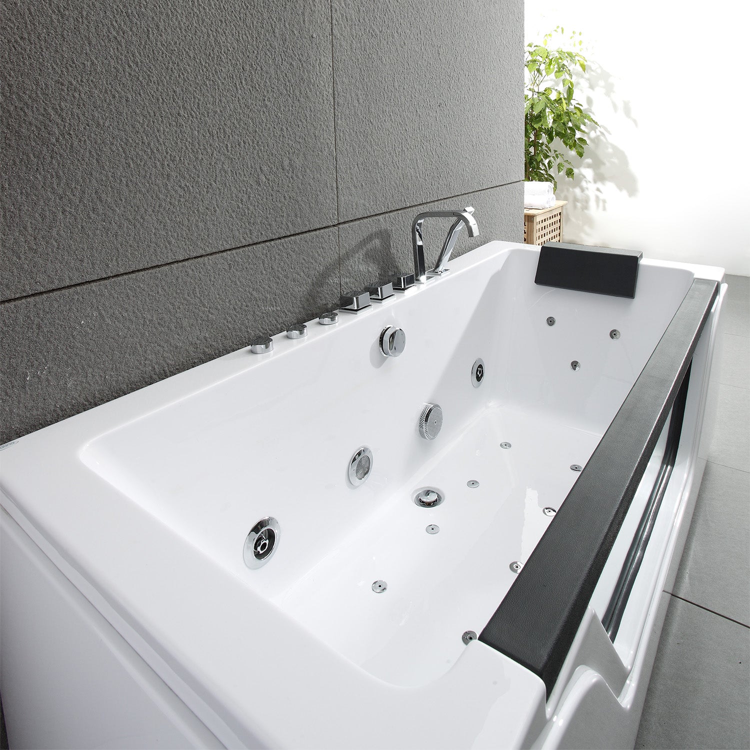Nous avons acheté cette baignoire balnéo il y a un an et nous en sommes très satisfaits. Nous l’utilisons régulièrement et elle fonctionne parfaitement. Elle est très belle et apporte un vrai côté spa à la salle de bain. Les jets sont agréables, comme dans un jacuzzi, et le fait qu’elle soit double face est très pratique pour s’allonger des deux côtés. Les lumières intégrées sont géniales et rendent les moments encore plus relaxants. C’est un excellent produit que nous recommandons sans hésiter !
