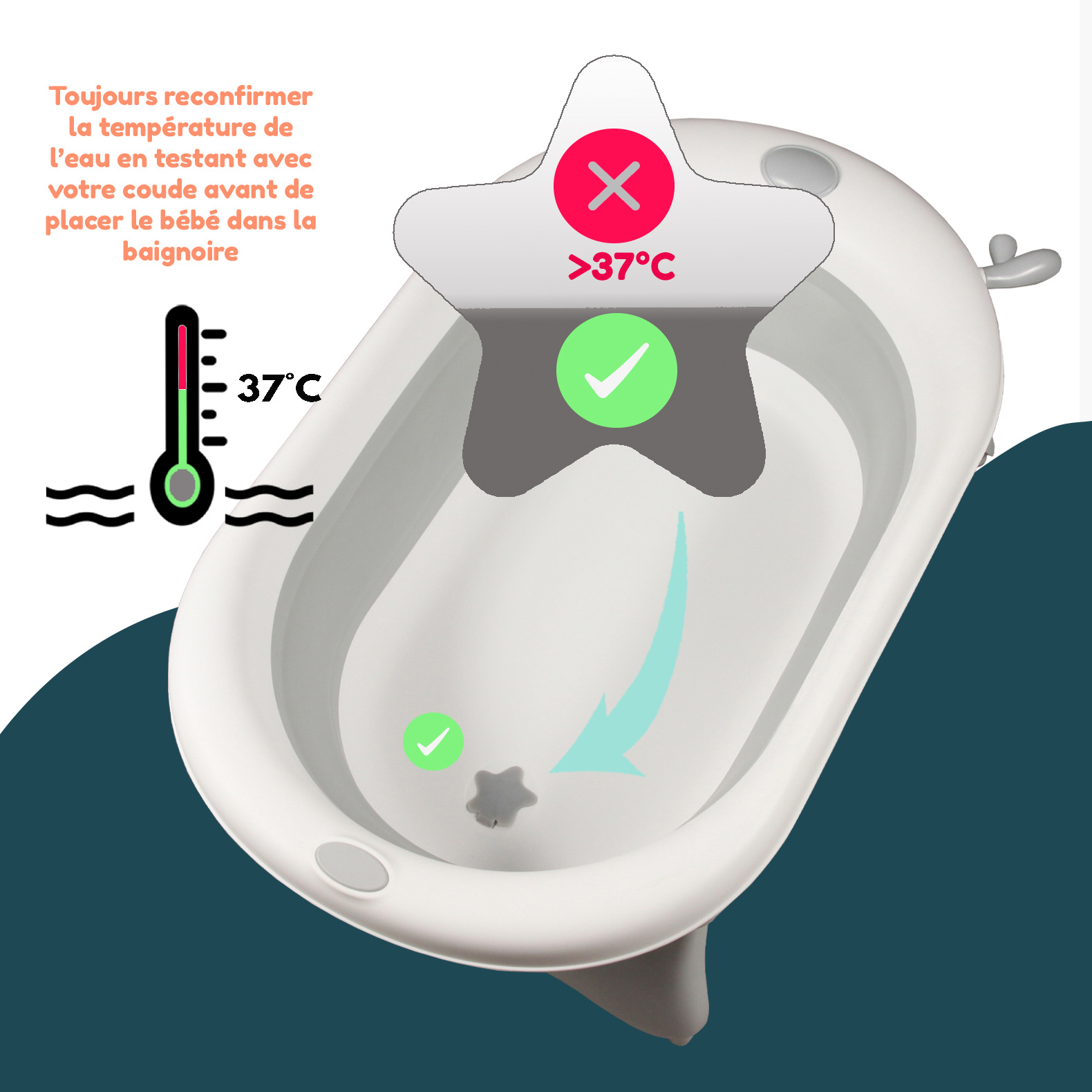 Baignoire bébé pliable spacieuse Témoin de chaleur intégré Pieds pliants avec patins antidérapants Bouchon de vidange Pliable pour un rangement et un transport facile