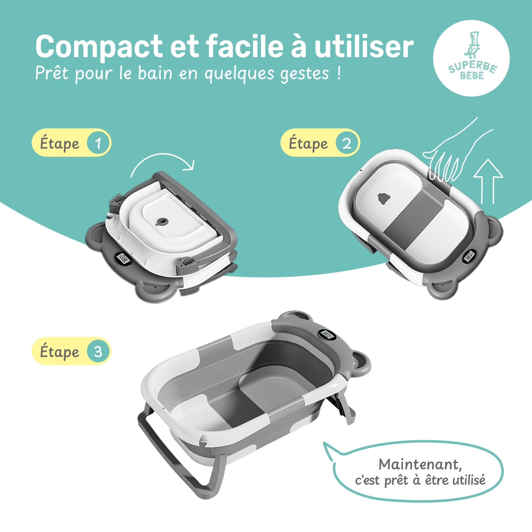 Baignoire bébé pliable - Thermomètre et coussin inclus - BEAR | SUPERBE BEBE