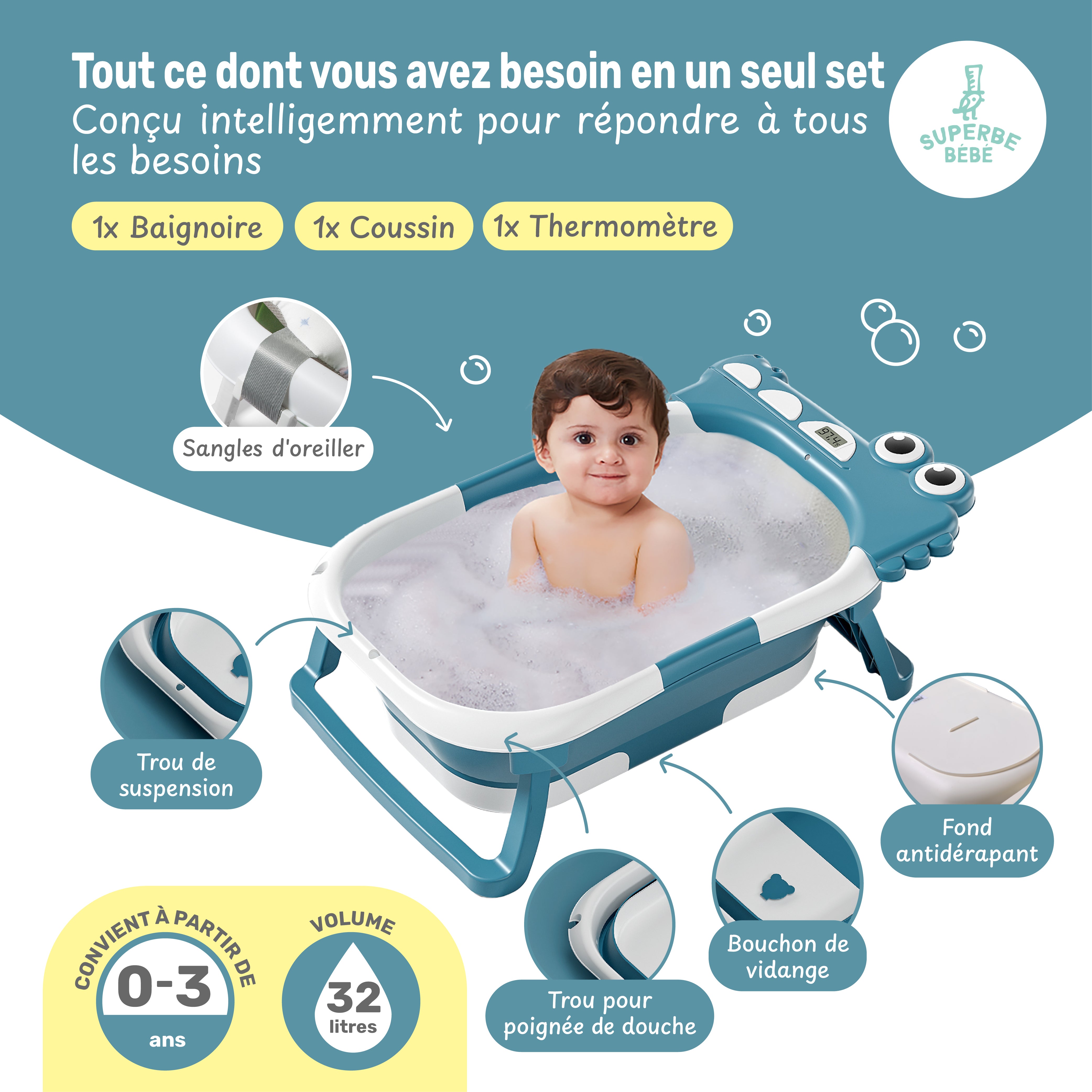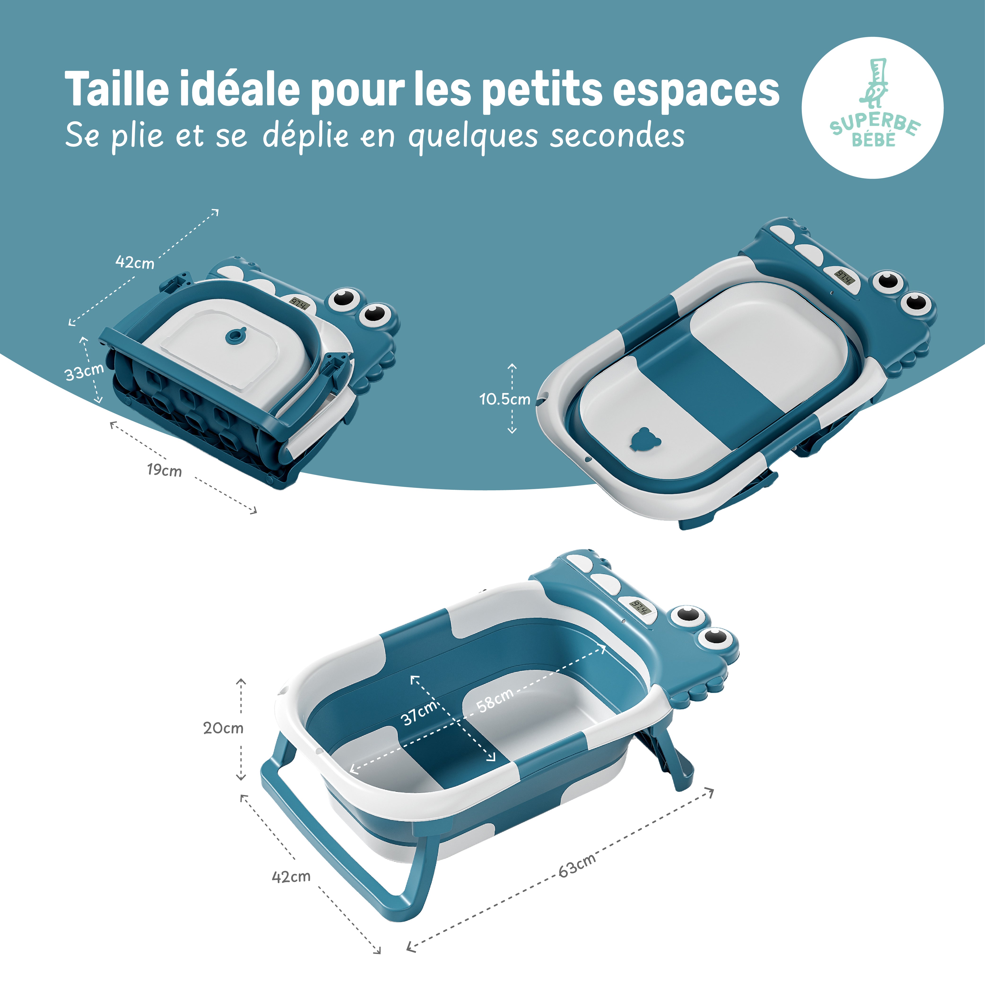 Baignoire bébé pliable - Thermomètre et coussin inclus - DINO - Duck Blue | SUPERBE BEBE