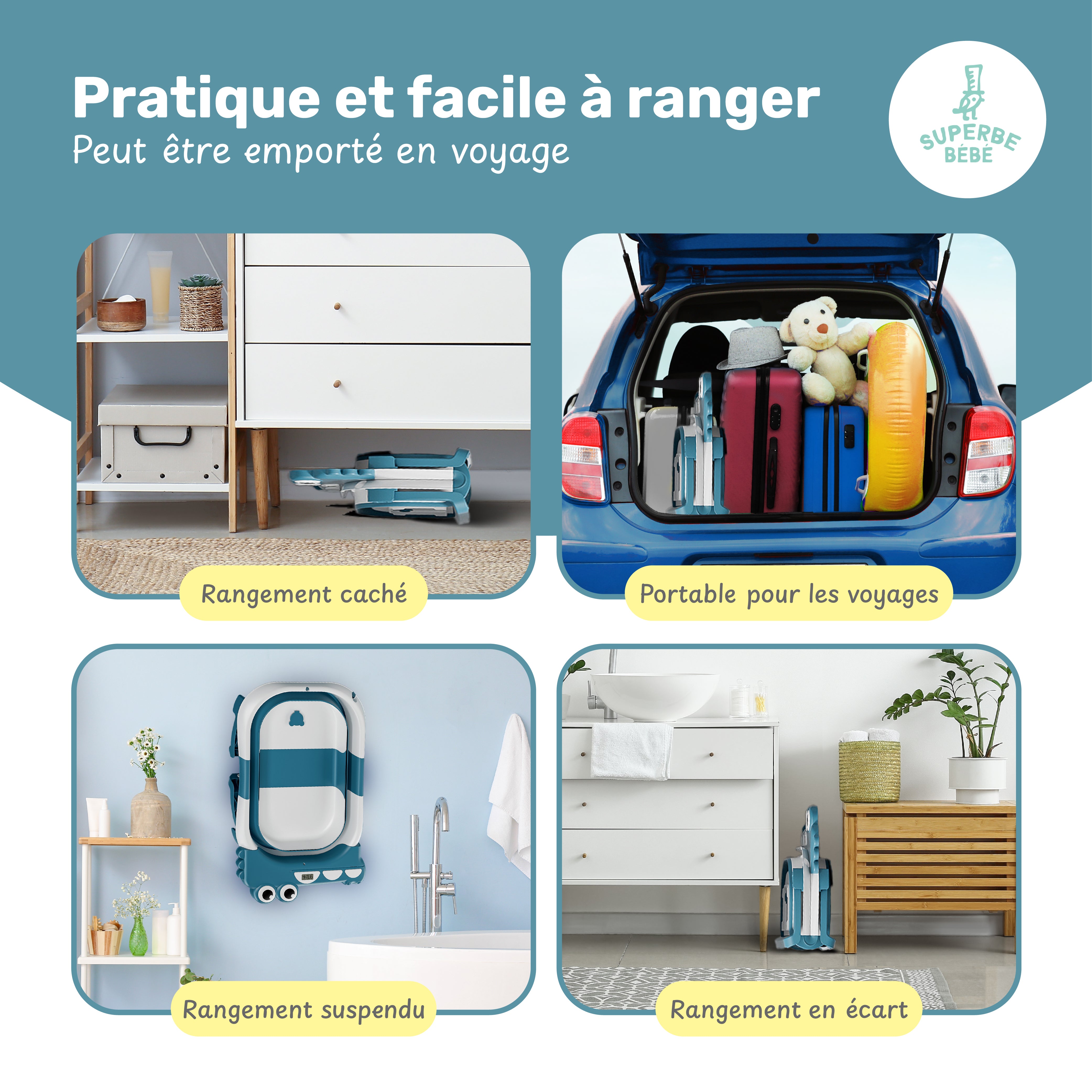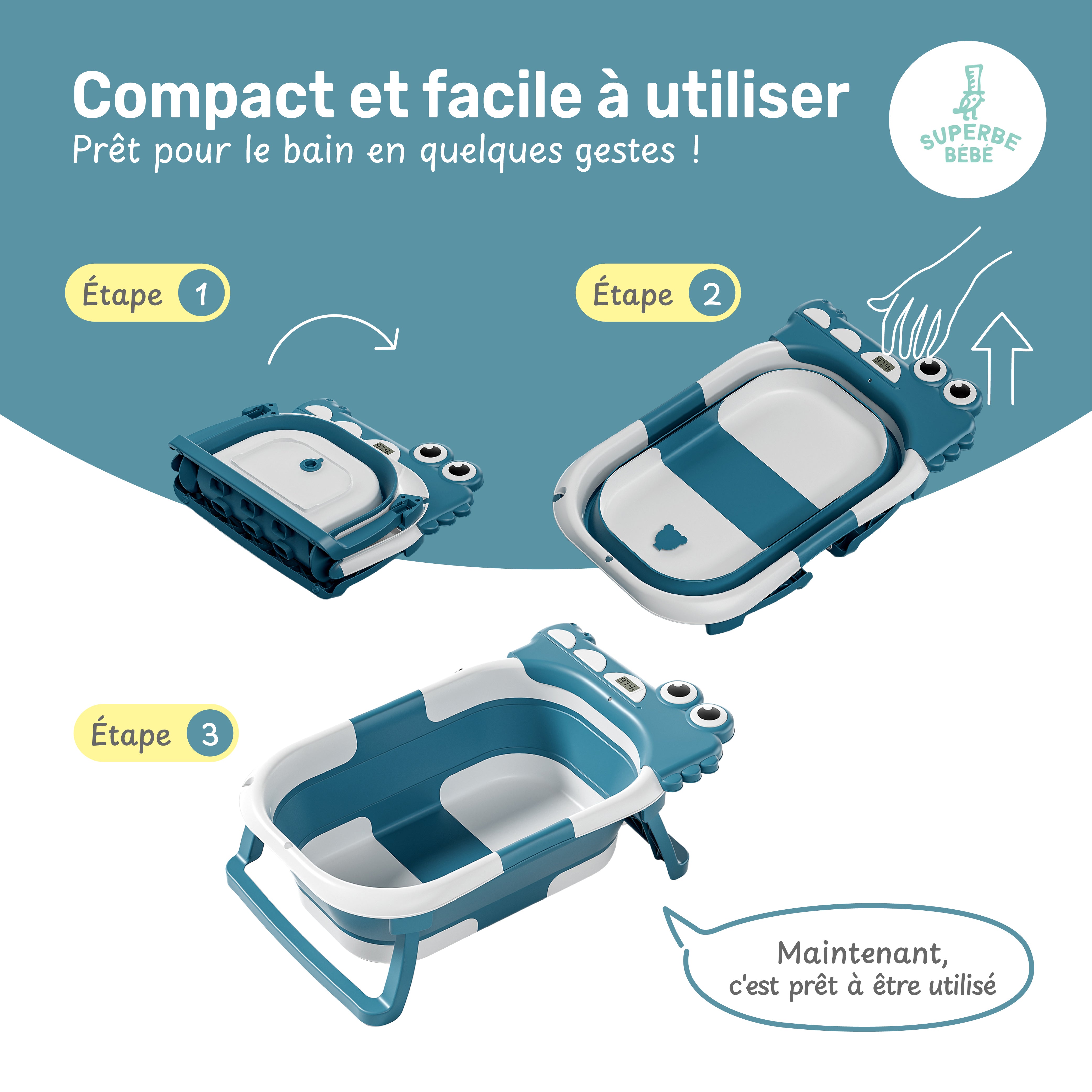 | Libellé | Baignoire bébé pliable - Thermomètre et coussin inclus - DINO - Duck Blue | SUPERBE BEBE |