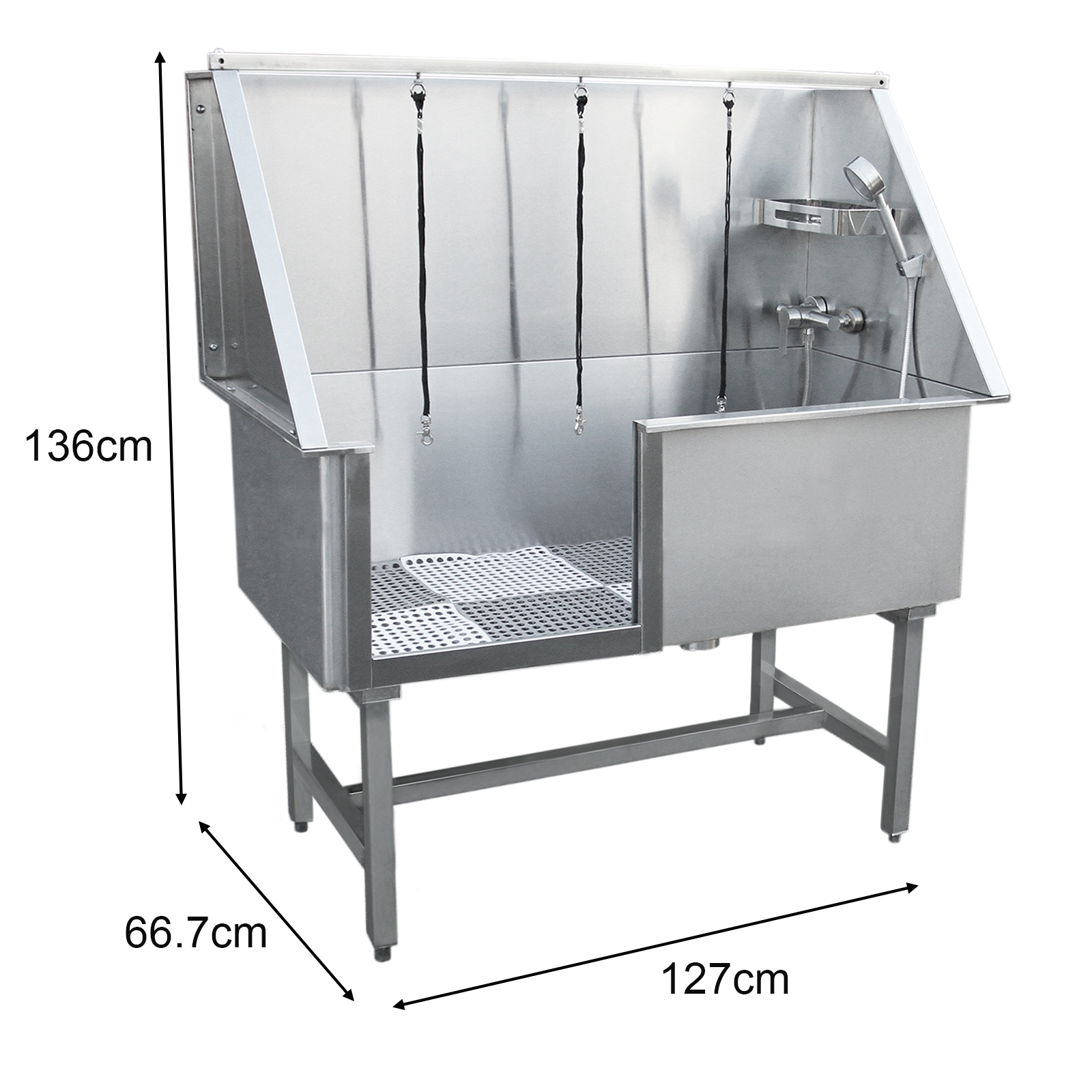Prenez soin de vos chiens avec ce superbe bain en acier inoxydable, conçu pour les toiletteurs d'animaux très occupés.