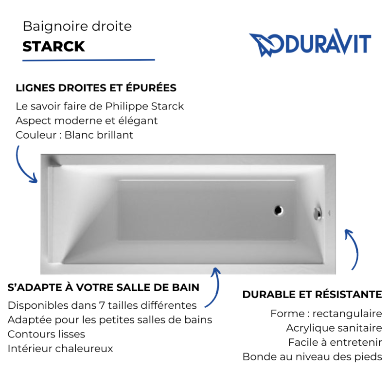Les avantages de la baignoire droite 160x70 DURAVIT Starck :