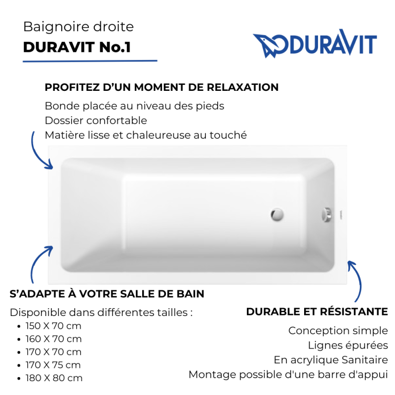 Les avantages de la baignoire droite 180x80 DURAVIT Duravit No.1 :
