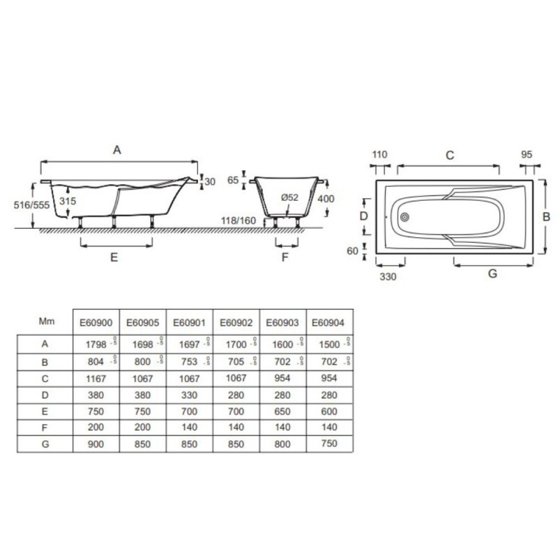 | Type de baignoire | Baignoire à encastrer/habiller |