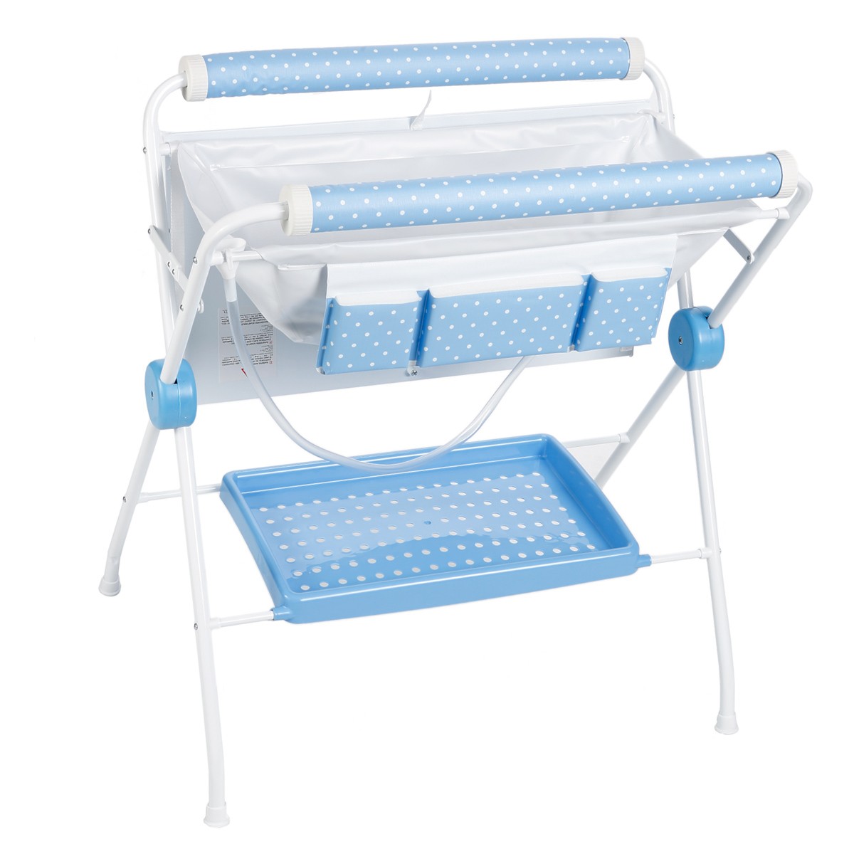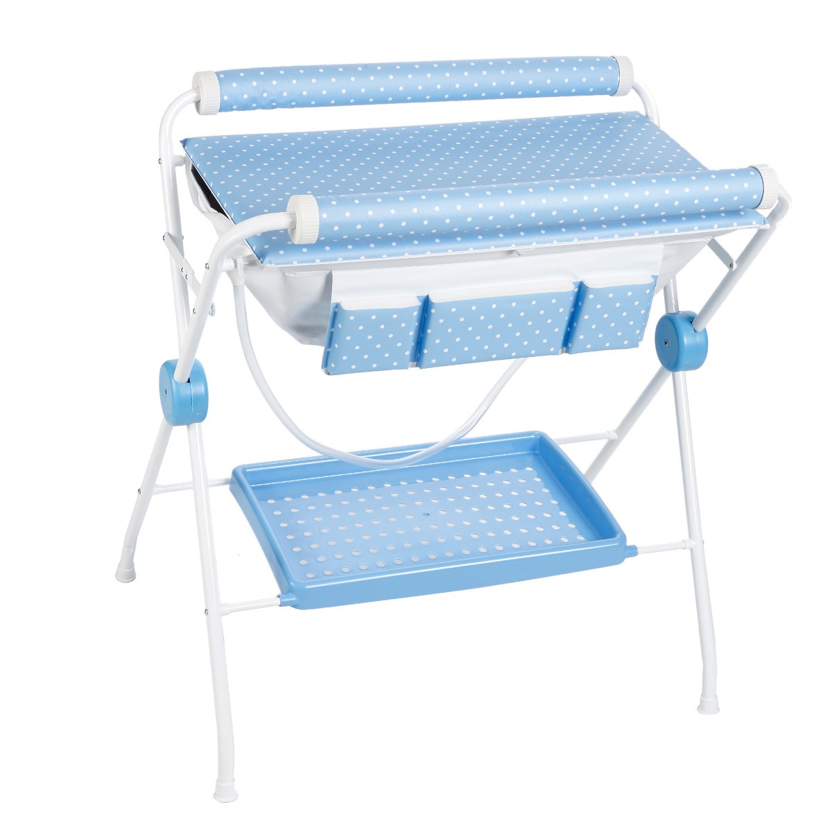 Baignoire et table à langer sur pied pliant 2 en 1 Bleu motif pois