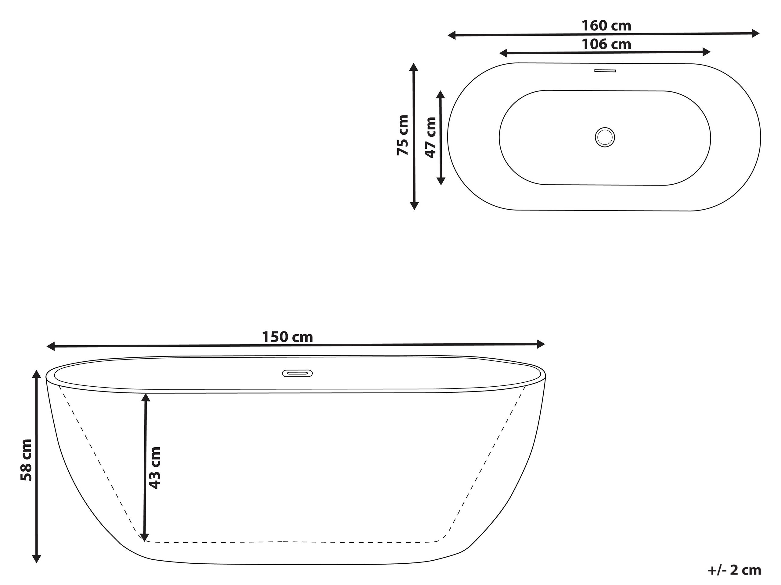 | Libellé | Baignoire îlot CARRERA 160 x 75 cm Blanc |