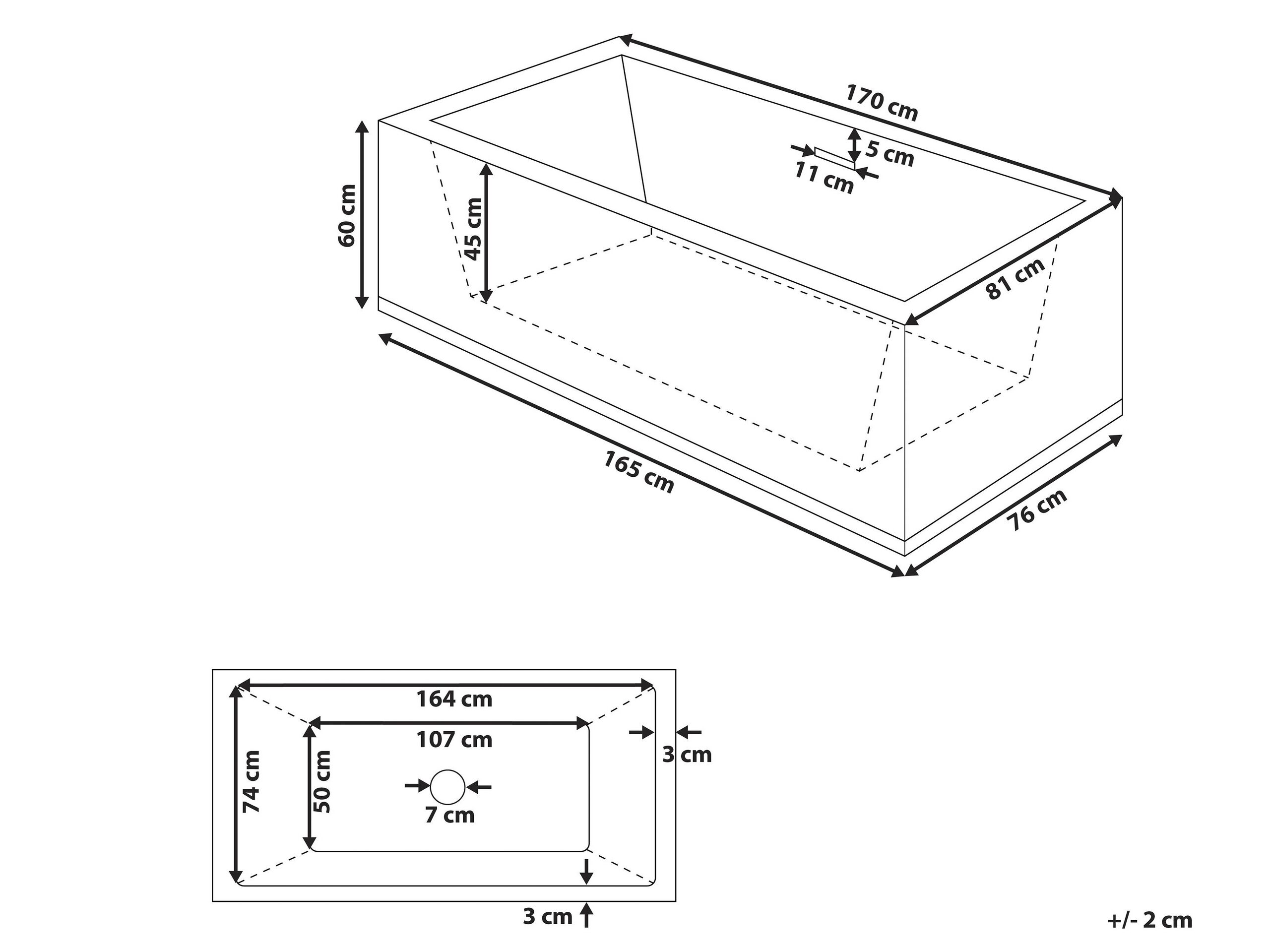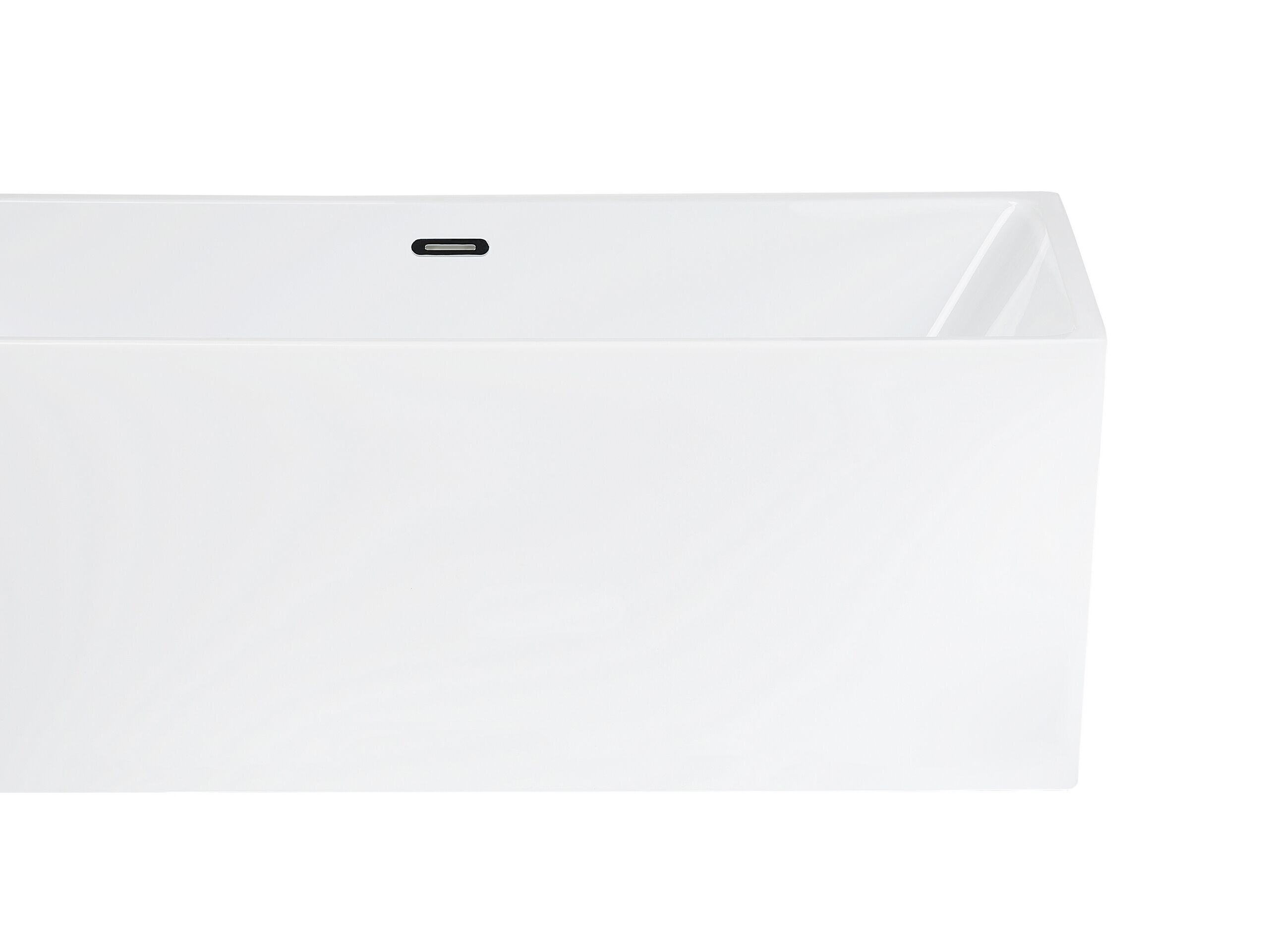 Baignoire centrale. Il n'y a rien de plus vivifiant qu'un bain chaud après une longue journée. Cette baignoire rectangulaire vous garantira une expérience nouvelle aux sensations inédites chez vous. Son design moderne en forme rectangulaire est constitué de bords larges et intérieurs obliques. Le trop-plein et l’arrivée d’eau, en chrome, sont situés au centre et ne vous gêneront donc pas lors de vos longues séances de relaxation. La surface en acrylique blanc brillant comprend un revêtement en fibre de verre résistant aux chocs et facile d'entretien.