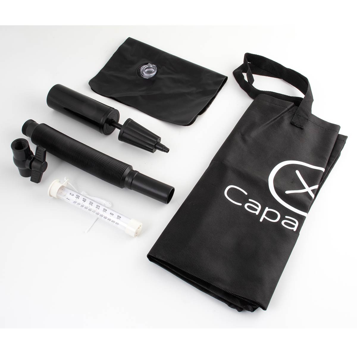 - Accessoires : Housse de protection, 8 pieds pour une excellente stabilité, Valve d'entrée/sortie d'air à 2 voies, Thermomètre, pompe à main, et tuyau de vidange extensible (1m max), Coussin gonflable, Patch de réparation et sac de transport inclus