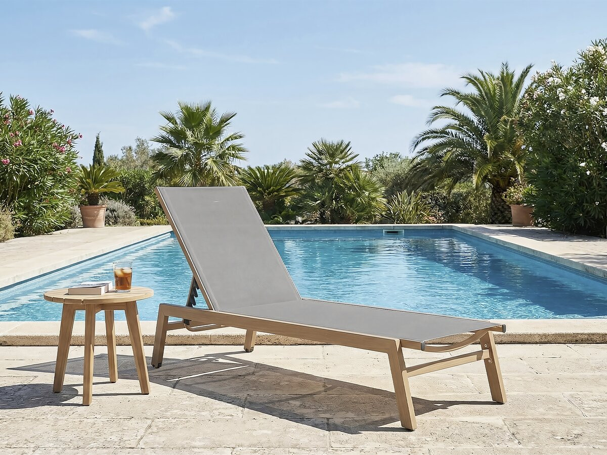 | Libellé | Bain de soleil en aluminium imitation bois "Elysia" - Gris clair |