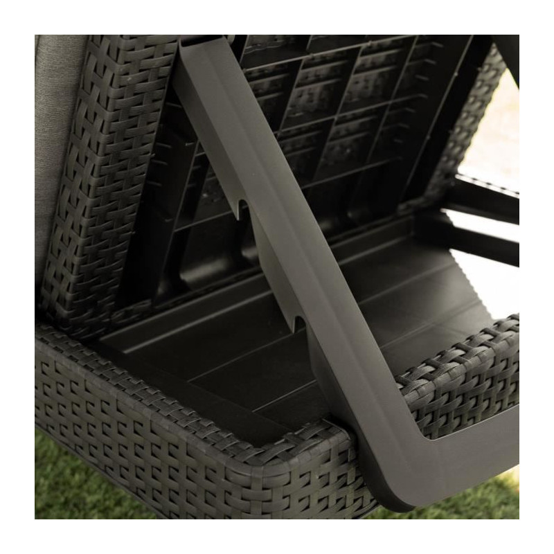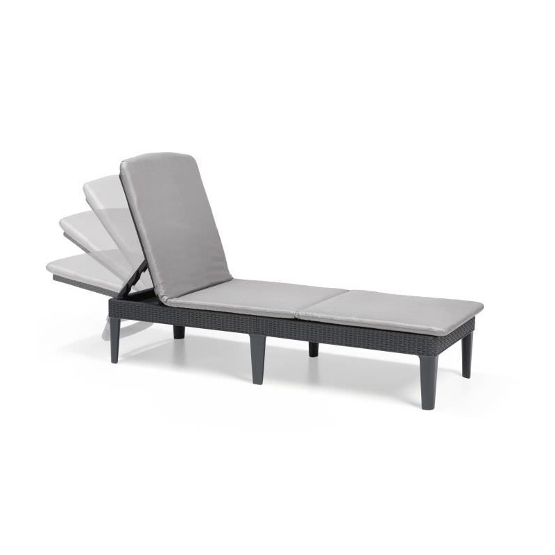 Bain de soleil Jaipur 4 positions - Imitation rotin en résine de synthese (polypropylene - Caco3) - Avec coussin pour votre confort - Dimensions : 187x58x29 cm - Structure traitée anti UV - Entretien de la structure facile avec de l'eau et du savon.