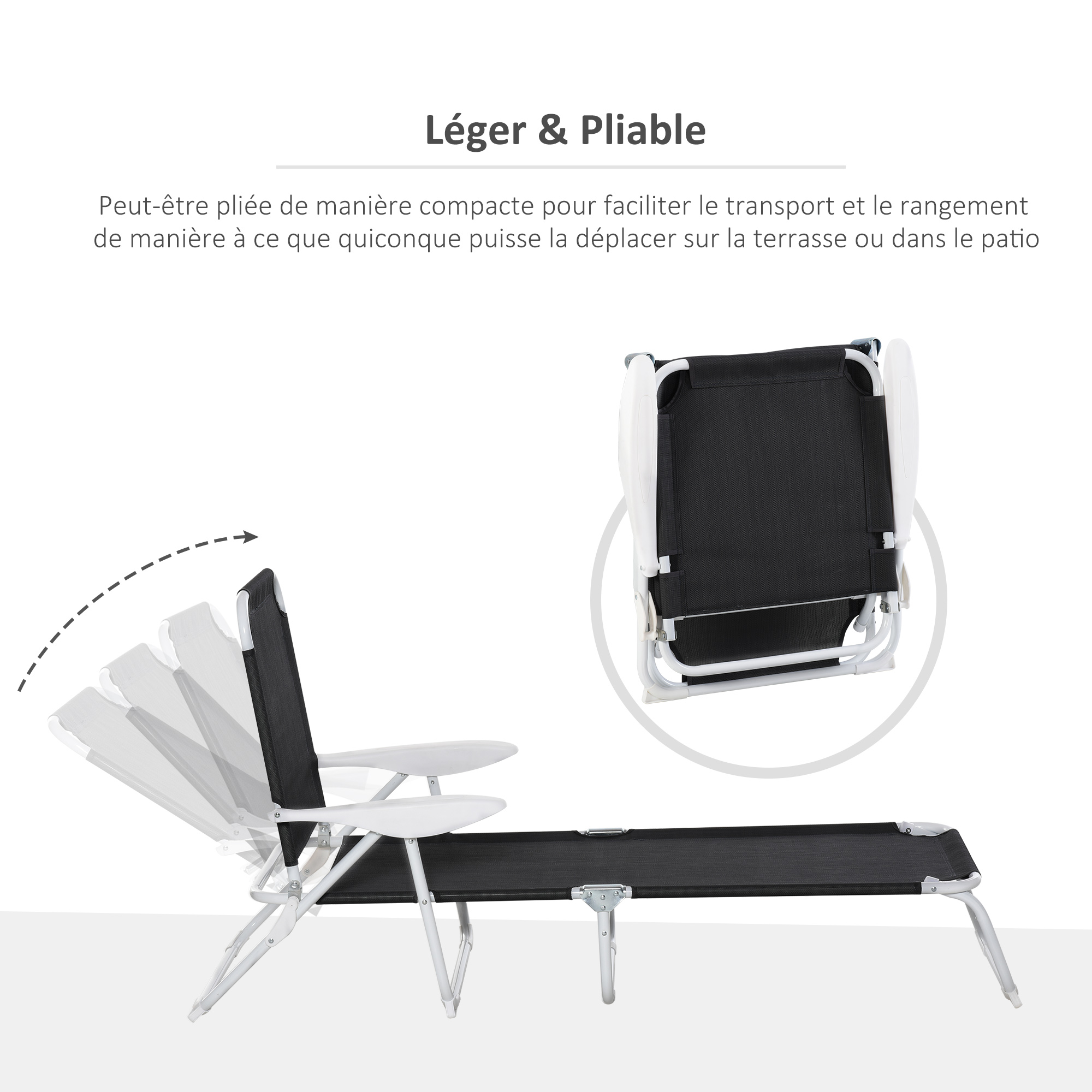 - Dossier réglable multi-positions, 4 positions au choix suivant votre besoin : lecture, sieste, bain de soleil, etc...