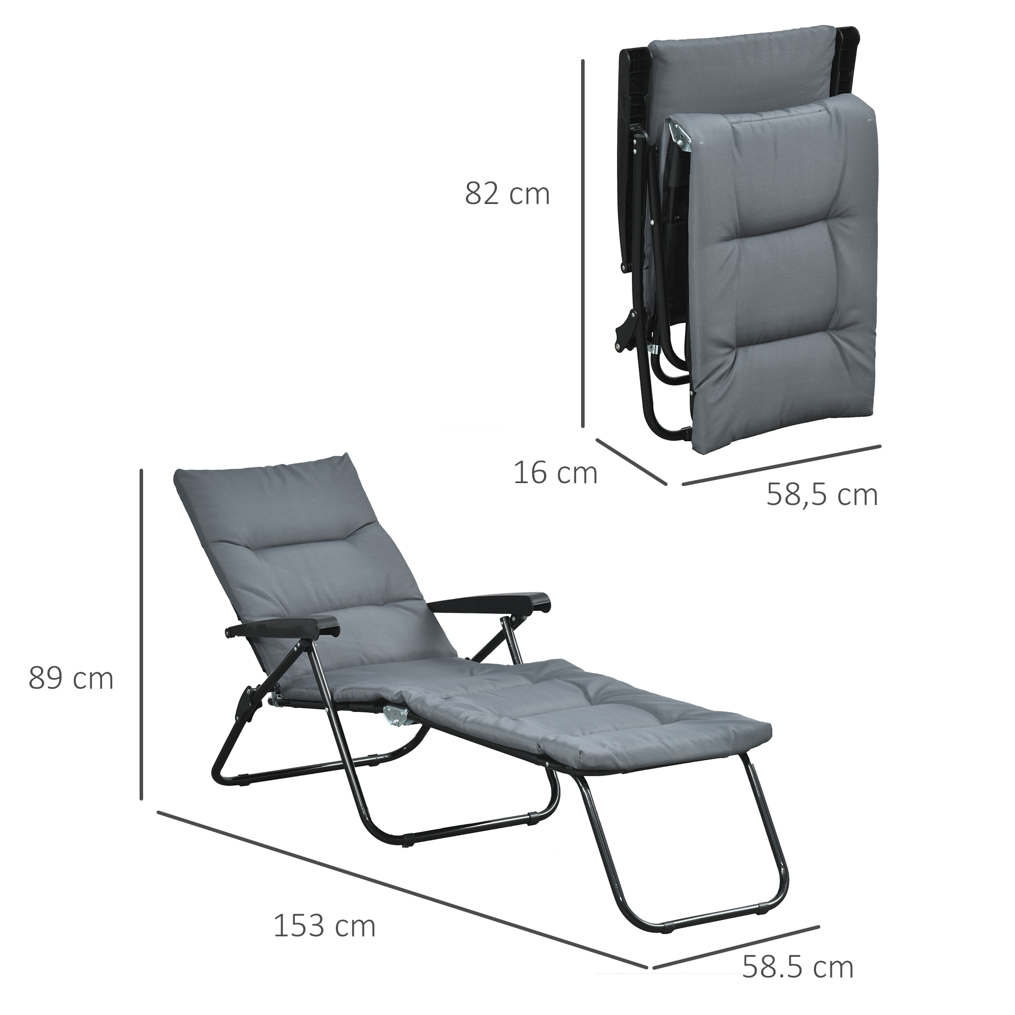 | Libellé | Bain de soleil pliable transat inclinable 6 positions grand confort avec matelas + accoudoirs acier polyester gris |