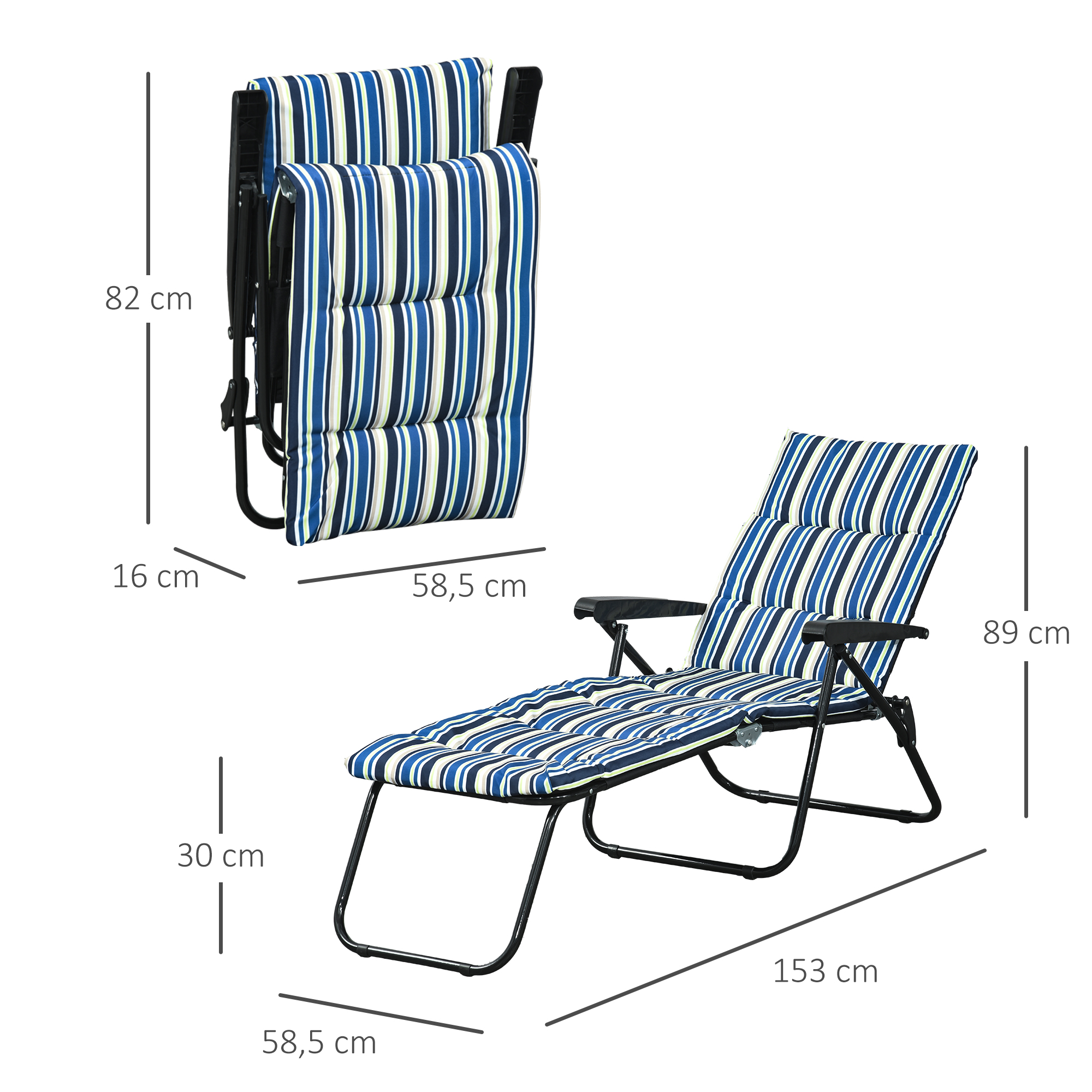 Libellé Bain de soleil pliable transat inclinable 6 positions grand confort avec matelas + accoudoirs acier polyester multicolore