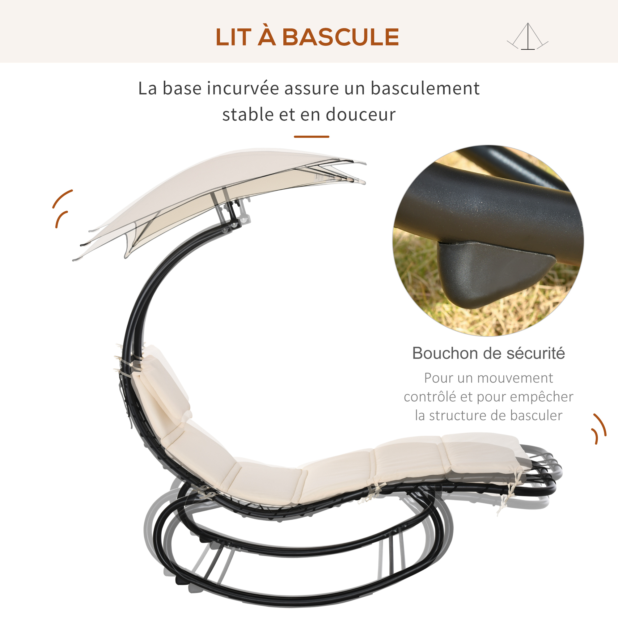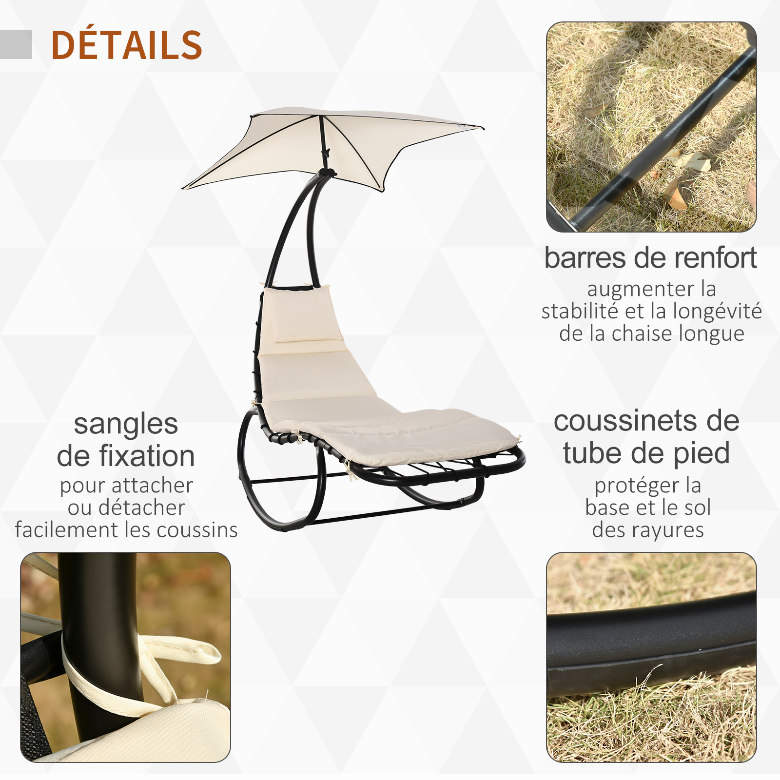 Bain de soleil transat à bascule design contemporain avec pare-soleil, matelas grand confort, tétière mét