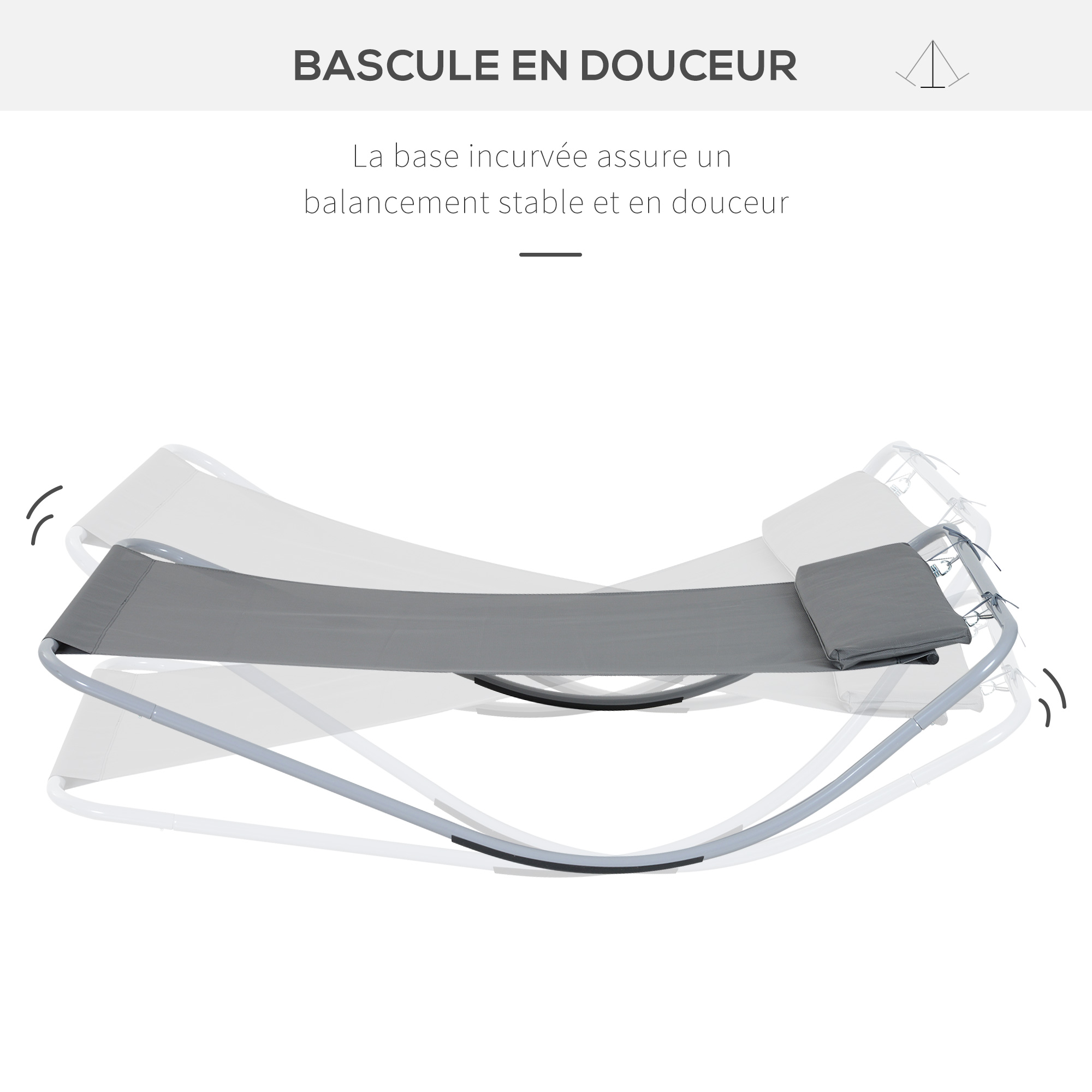 Bain de soleil transat de jardin bascule hamac 212L x 130l x 60H cm gris