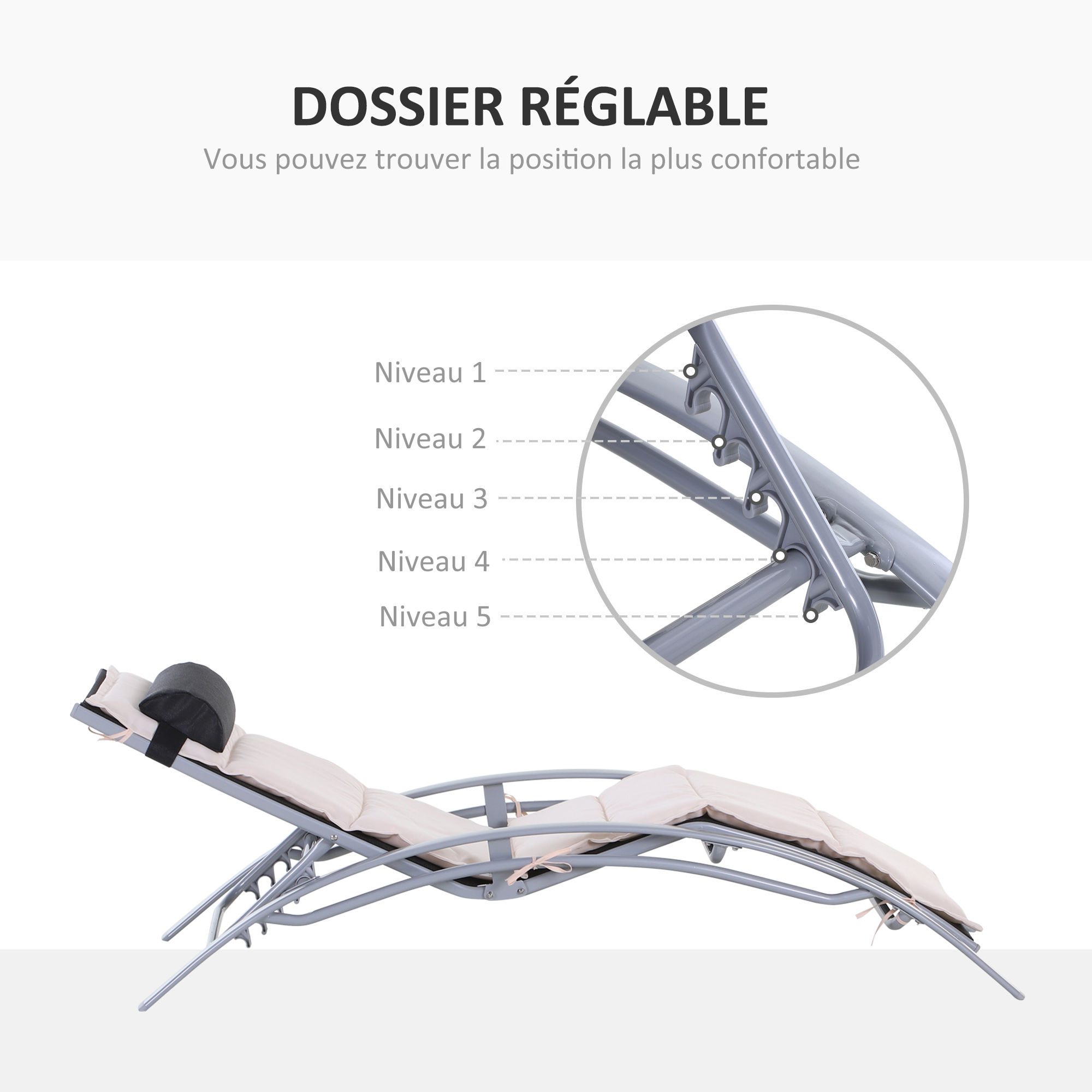 - Dossier inclinable multi-positions (5) : idéal pour trouver la position la plus adaptée à la situation