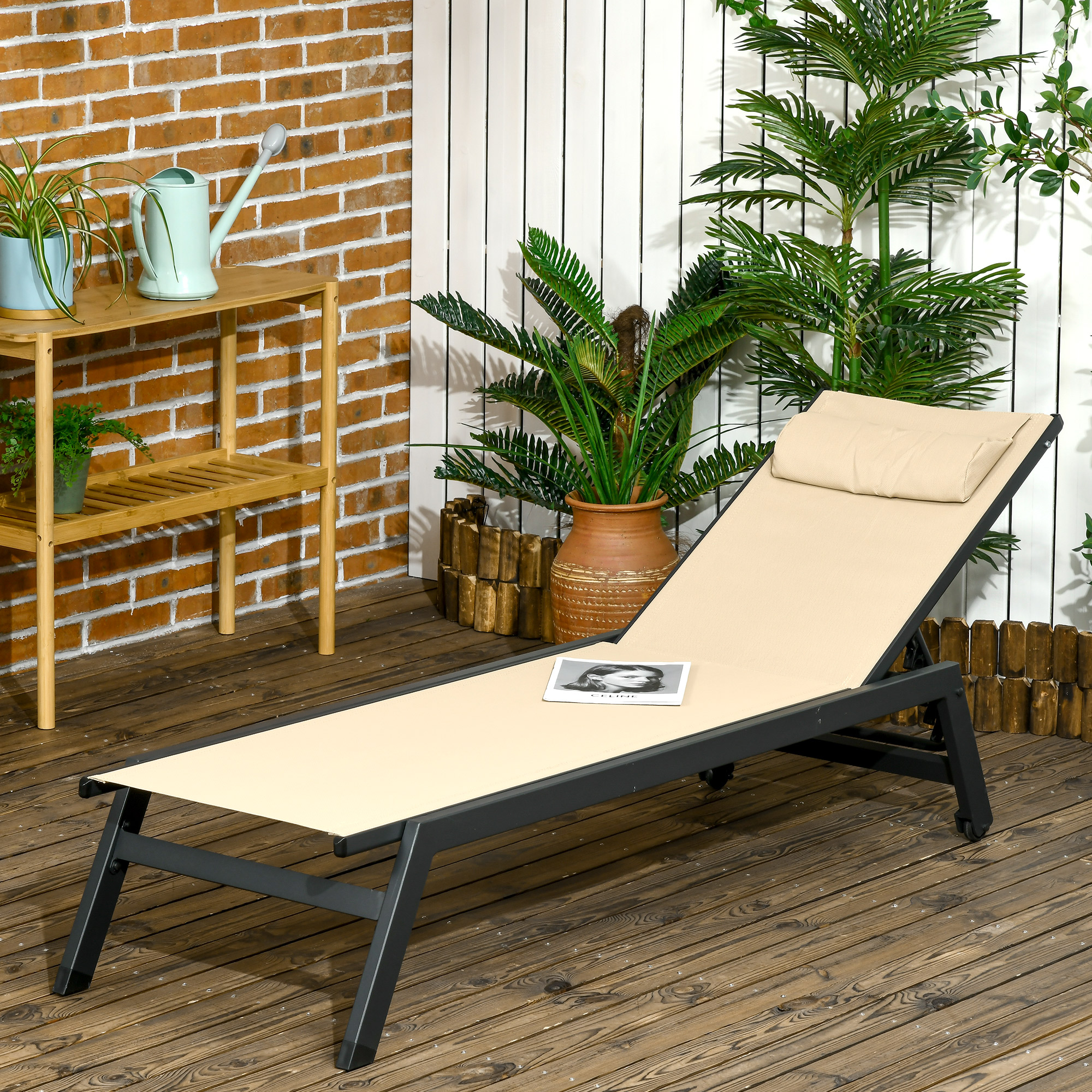 - Dossier inclinable 5 positions avec tétière afin de s'adapter à tous vos besoins : prendre le soleil, faire la sieste, lire un livre, etc.