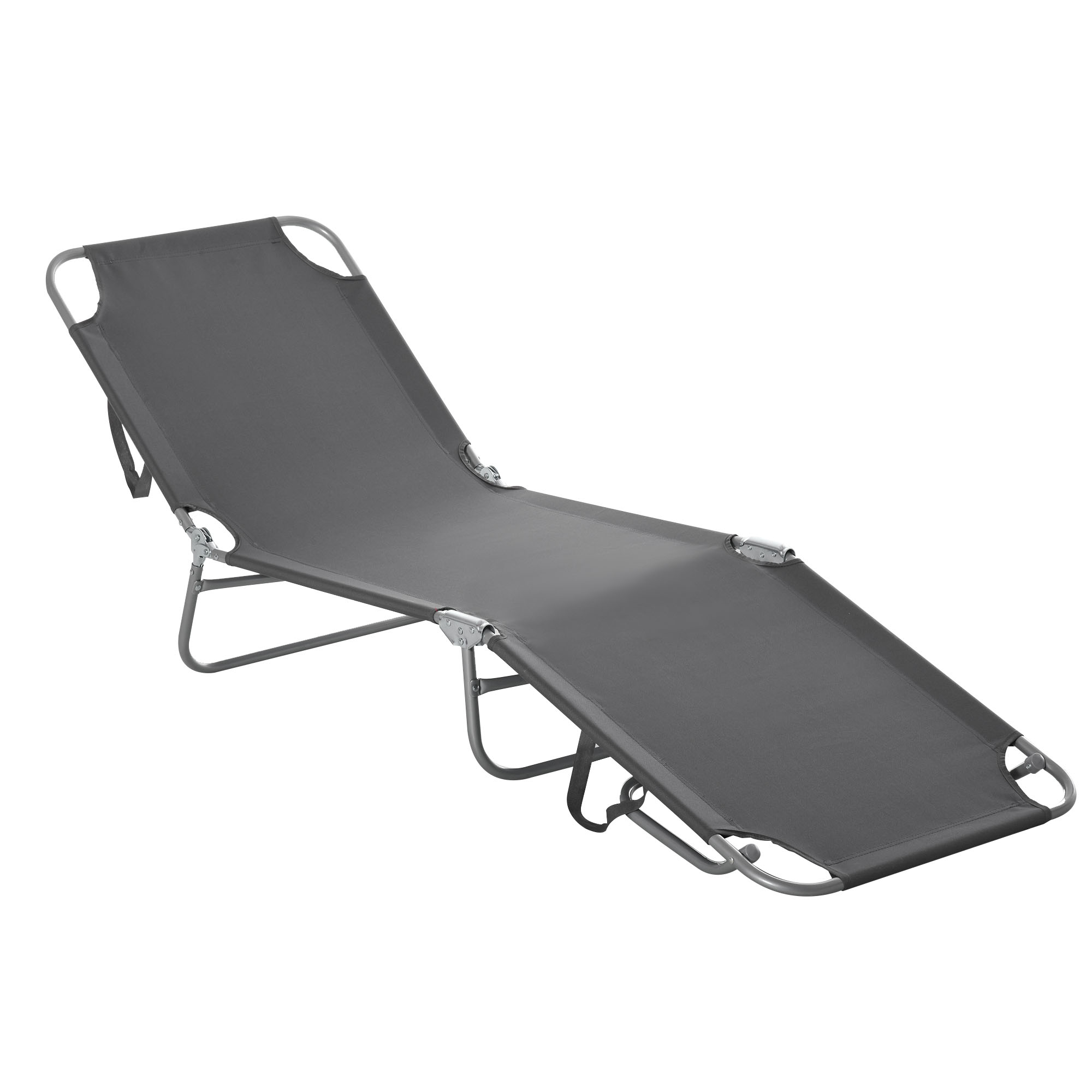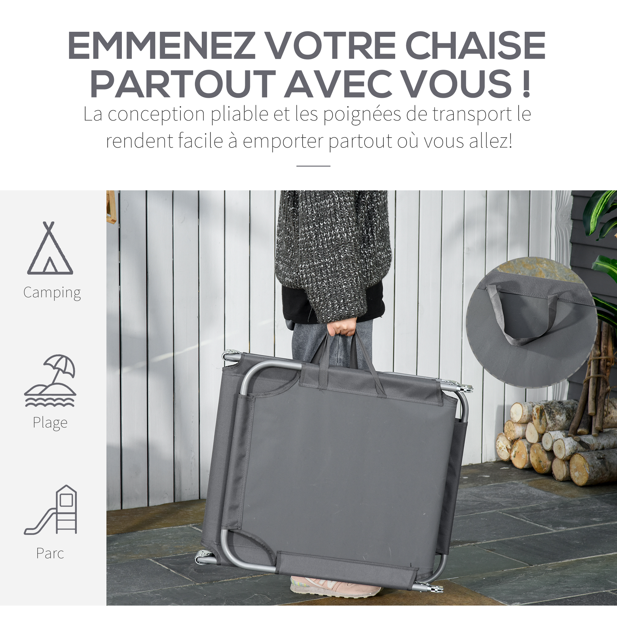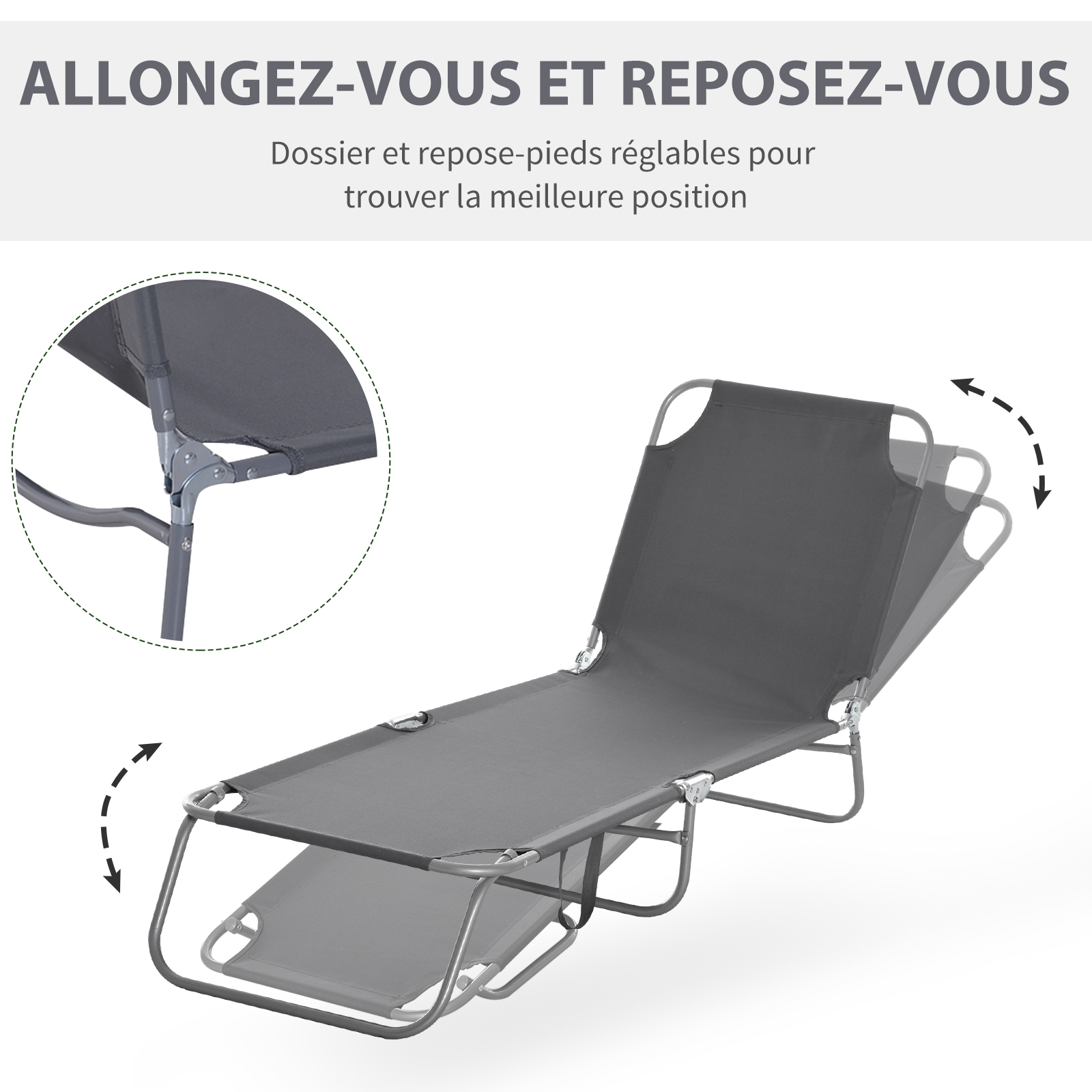 Bain de soleil transat pliable dossier réglable multipositions métal et polyester gris