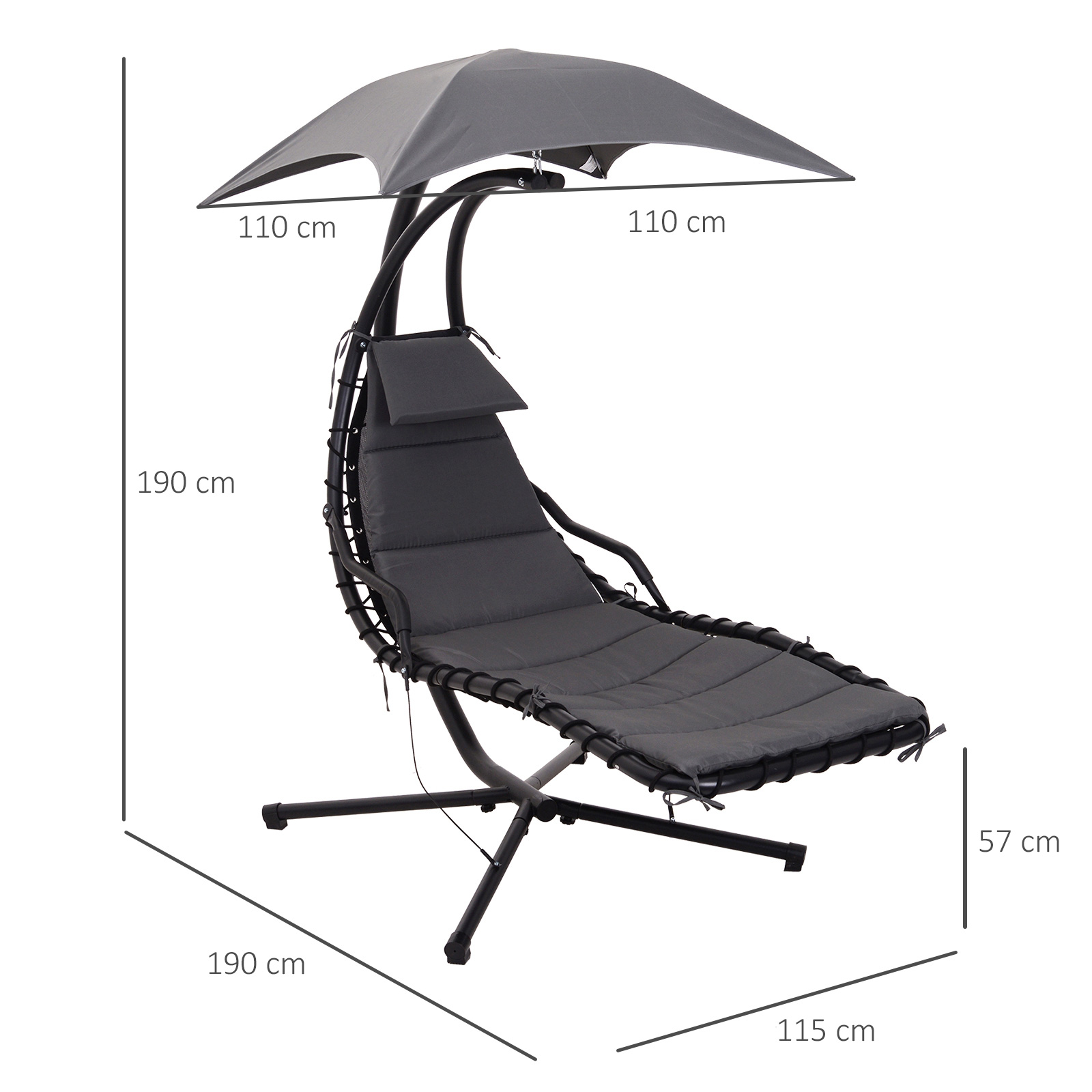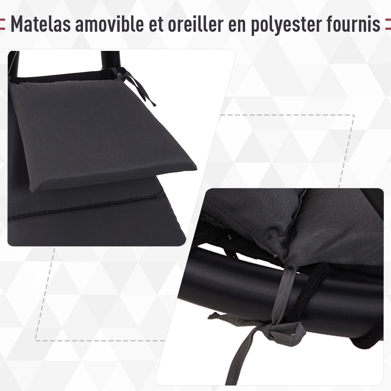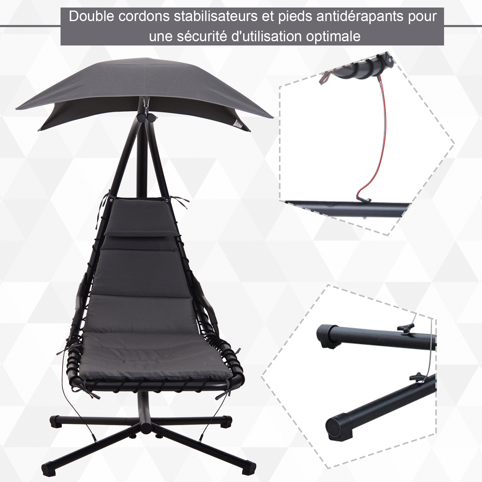 Libellé Bain de soleil transat suspendu avec pare-soleil et matelas design contemporain 190L x 115l x 190H cm acier polyester gris foncé noir