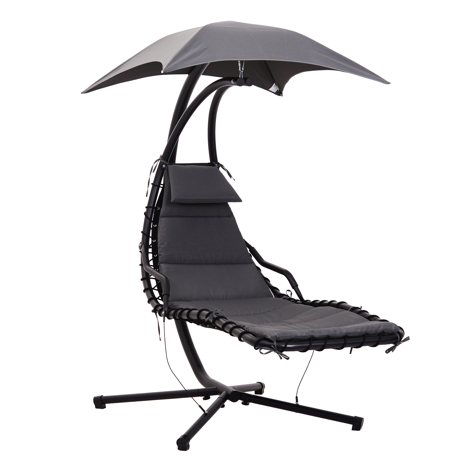 | Libellé | Bain de soleil transat suspendu avec pare-soleil et matelas design contemporain 190L x 115l x 190H cm acier polyester gris foncé noir |