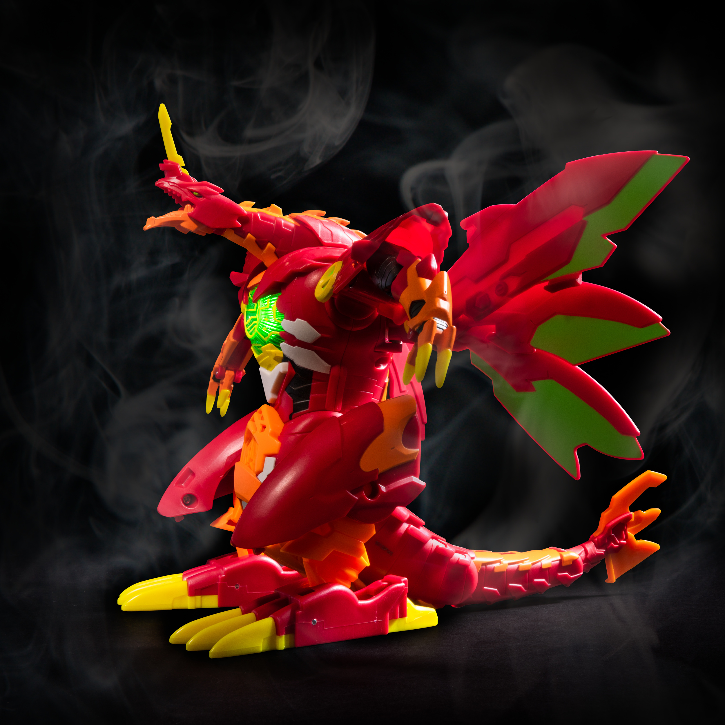 Le Bakugan le plus puissant de l'univers est arrivé : c'est Dragonoid Maximus ! Mesurant 20,3 cm, ce dragon Bakugan super puissant se transforme de manière spectaculaire dans un rugissement bestial, avec des effets sonores et lumineux. Dragonoid Maximus est fourni avec la sphère exclusive Titan Dragonoid Bakugan (incluse) ! Déposez-la sur Dragonoid Maximus pour le voir exploser et évoluer de manière puissante. Il s'ouvre dans un rugissement bestial et le noyau dans sa poitrine s'illumine ! Vous pouvez également utiliser n'importe quel Bakugan classique de votre collection pour activer Dragonoid Maximus, et déclencher les effets sonores et lumineux en appuyant sur son bouton à tout moment. Avec deux BakuCores, la carte Évo exclusive Dragonoid Maximus et la carte Personnage Titan Dragonoid exclusive, battez-vous comme jamais pour devenir l'ultime maître Bakugan ! Réveillez la puissance et faites tout exploser avec Bakugan Dragonoid Maximus !
