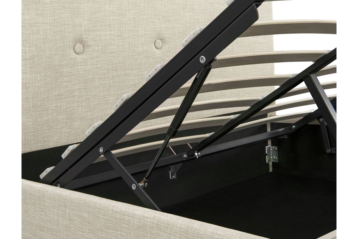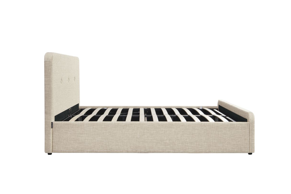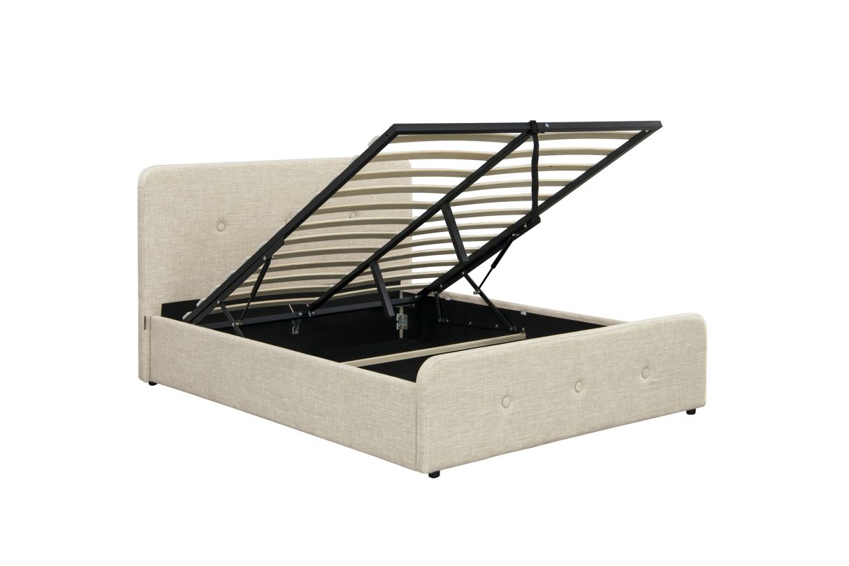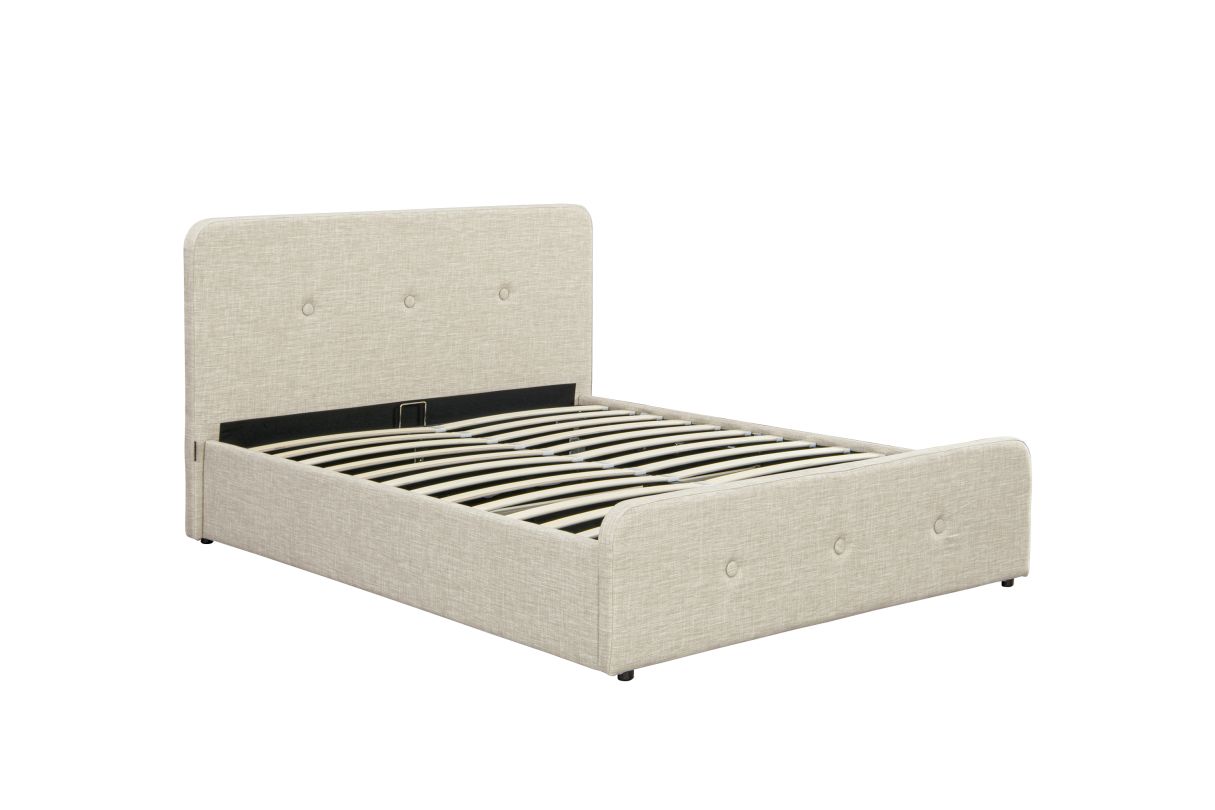 BALA - Cadre de lit avec tête de lit, sommier à lattes et coffre en tissu - Beige - 140 x 190cm