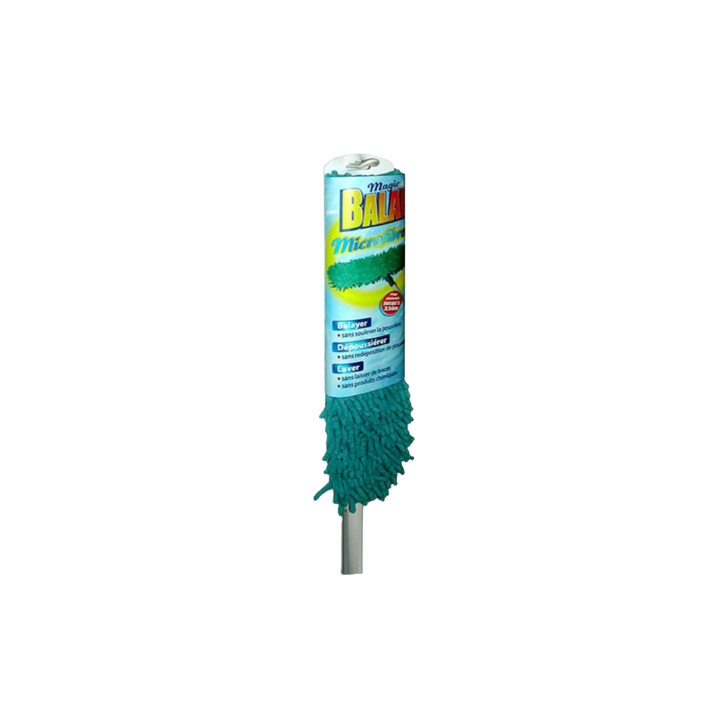 - Le Magic balai microfibres balaye, absorbe, lave et dépoussière en même temps. Il possède un manche télescopique jusqu'à 3.50m et une tête pivotante. Il peut s'utiliser mouiller ou sec. Grâce à sa tête articulée, son manche télescopique et sa tête microfibre, vous allez faire des miracles en nettoyage !