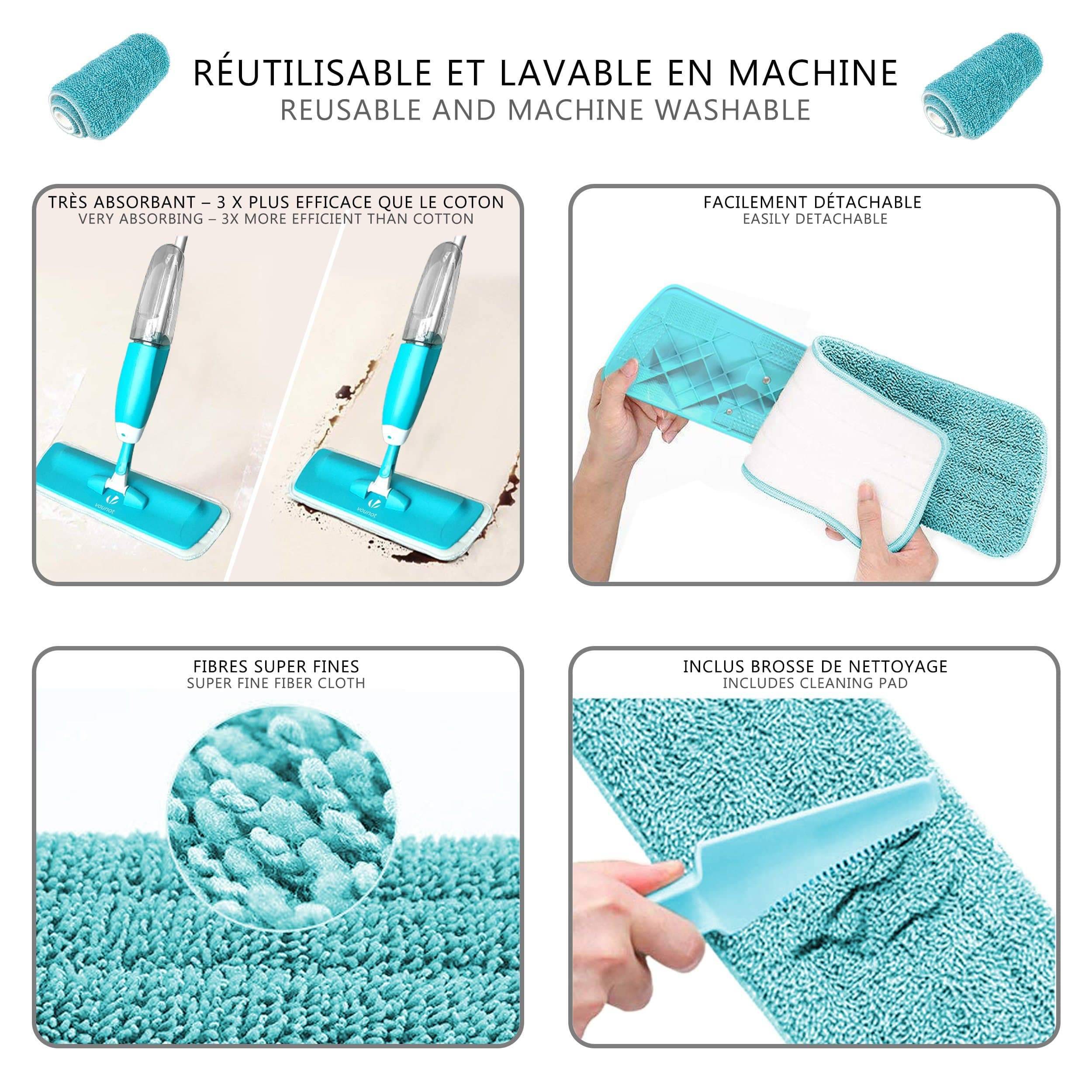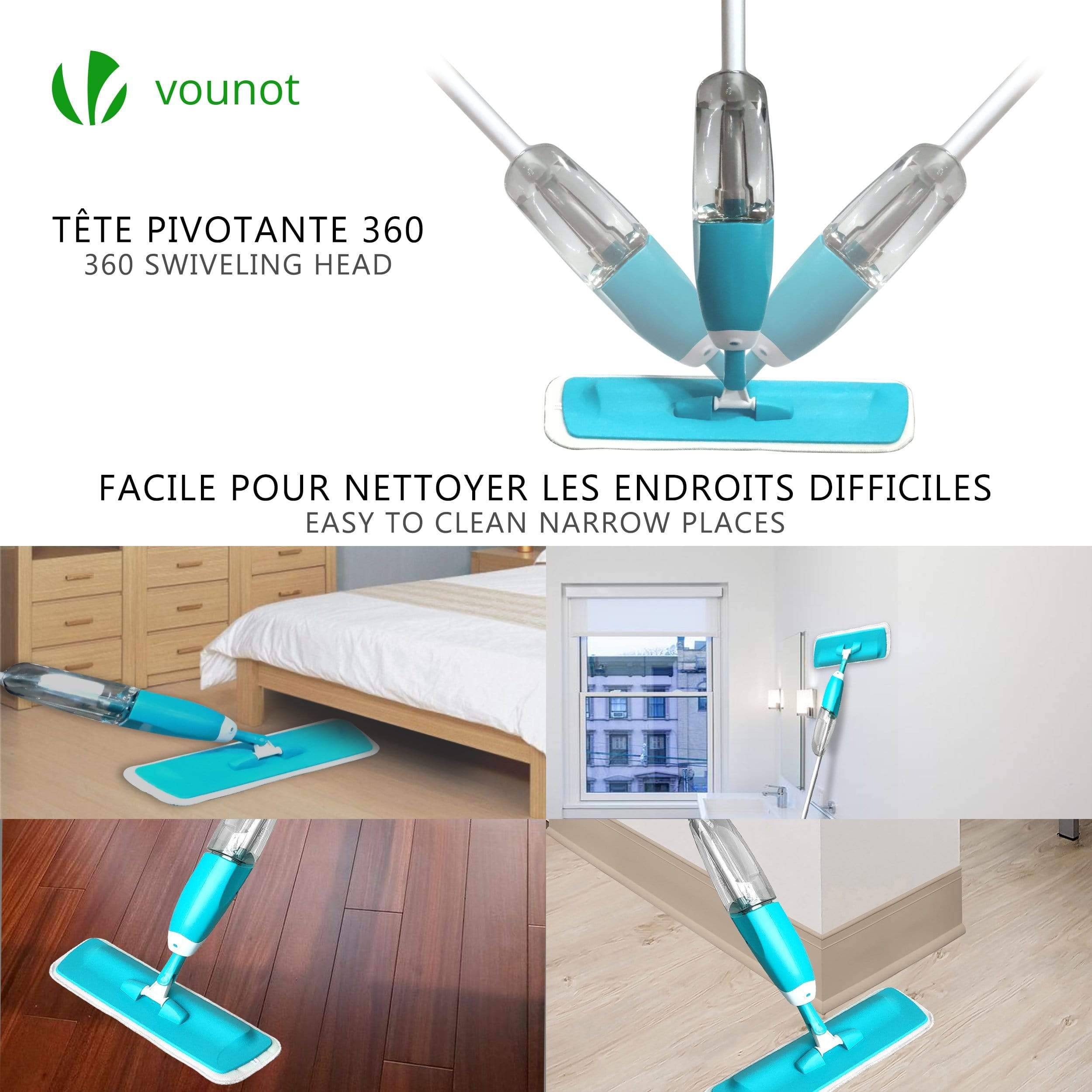 Tête Rotative à 360° : Notre balai de nettoyage possède une grande surface de nettoyage. Avec la tête de vadrouille flexible à 360 degrés, vous pouvez facilement nettoyer les coins et tous les bords difficiles d'accès.