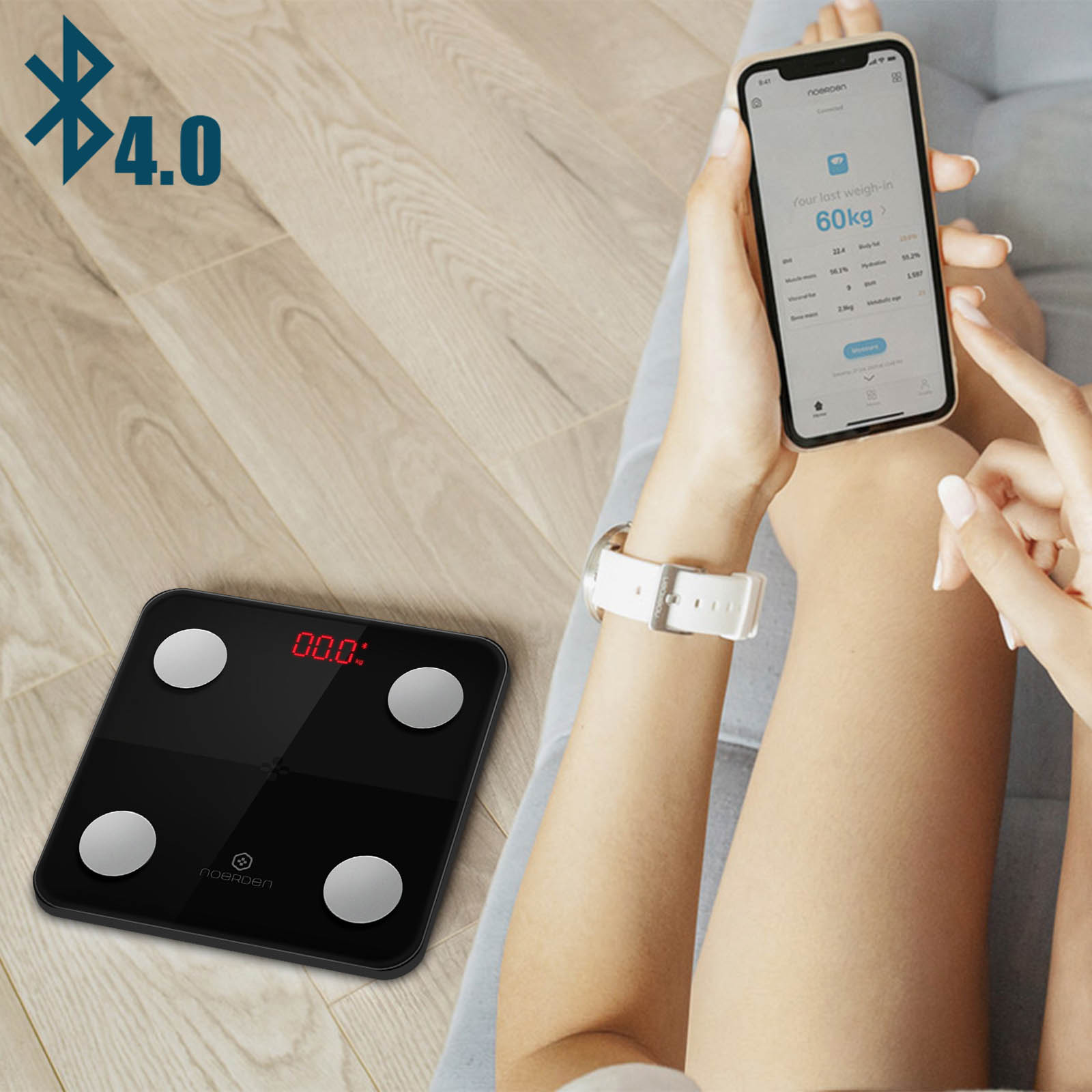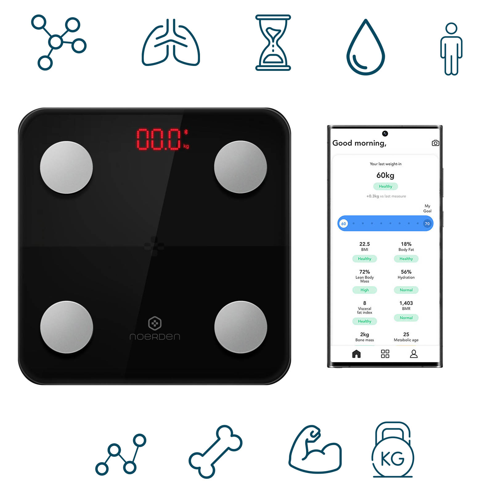 Balance Connectée Noerden Bluetooth Analyse Corporelle Poids avec Écran LED Noir