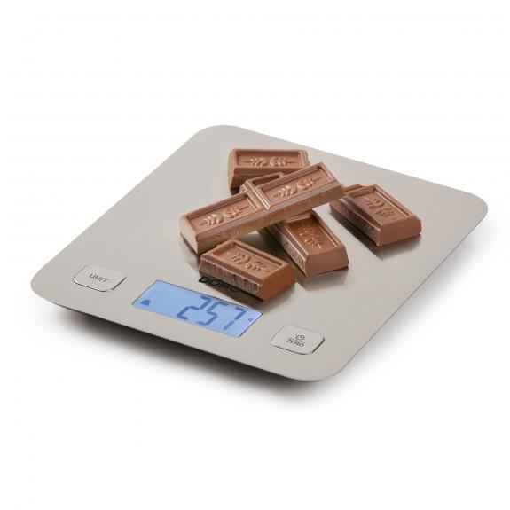 - Grande précision : pèse jusqu’à 1 gramme près - Poids maximum : 5 kg - Grand écran LCD lumineux : 6,6 x 2,9 cm - Plateau de pesage en acier inoxydable - Fonction tare - Arrêt automatique - Indication de pile épuisée et de poids excédentaire - Choix d’unité de mesures : g, ml, lb’oz, fl’oz - Dimensions : 21,7 x 18,7 x 1,65 cm - Fonctionne avec deux piles AAA (non fournies)