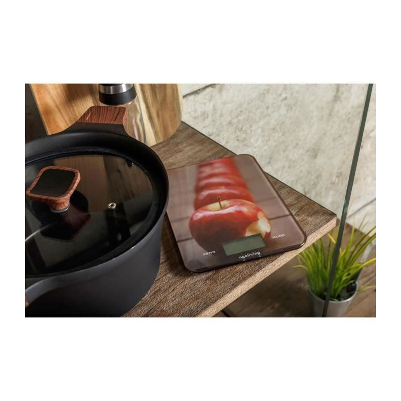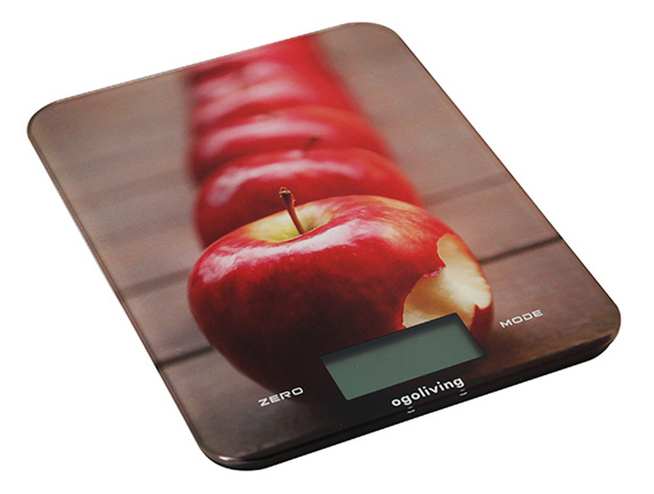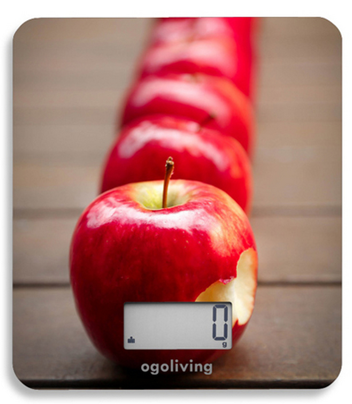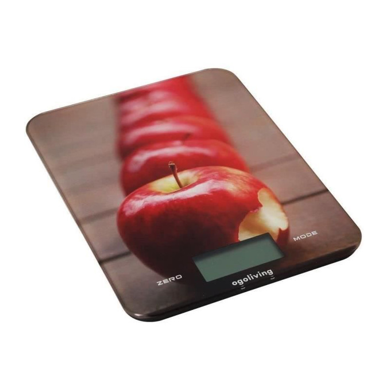 7915025 - balance de cuisine électronique 8kg - 1g - Balance de cuisine électronique Pommes OGO 7915025 au look croquant et acidulé. Le mélange parfait entre originalité, avec son décor réaliste, et qualité pour votre cuisine ! Cette balance électronique possède un plateau en verre trempé. Elle mesure le volume de l'eau et du lait. Elle est équipée des fonctions tare et arrêt automatiques.