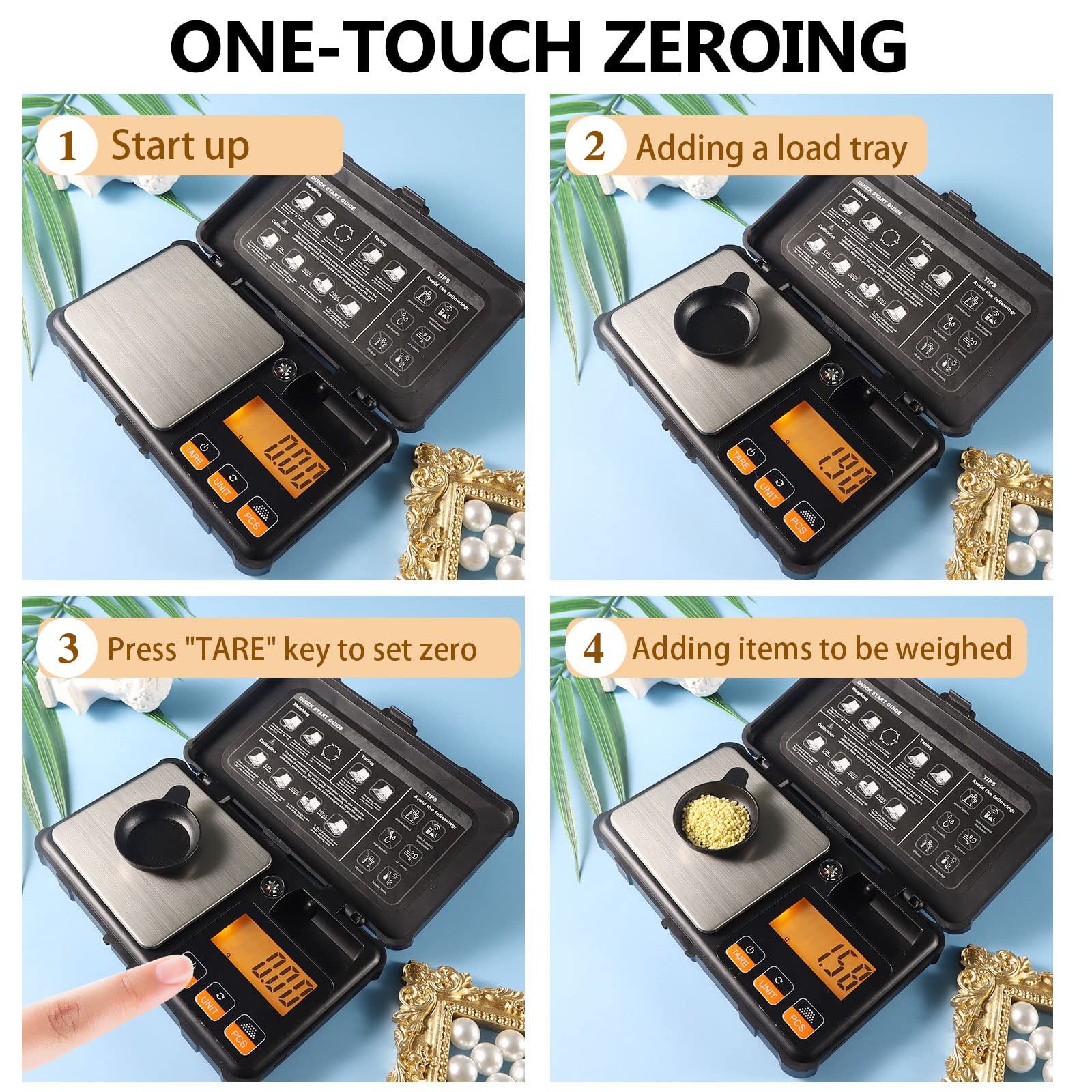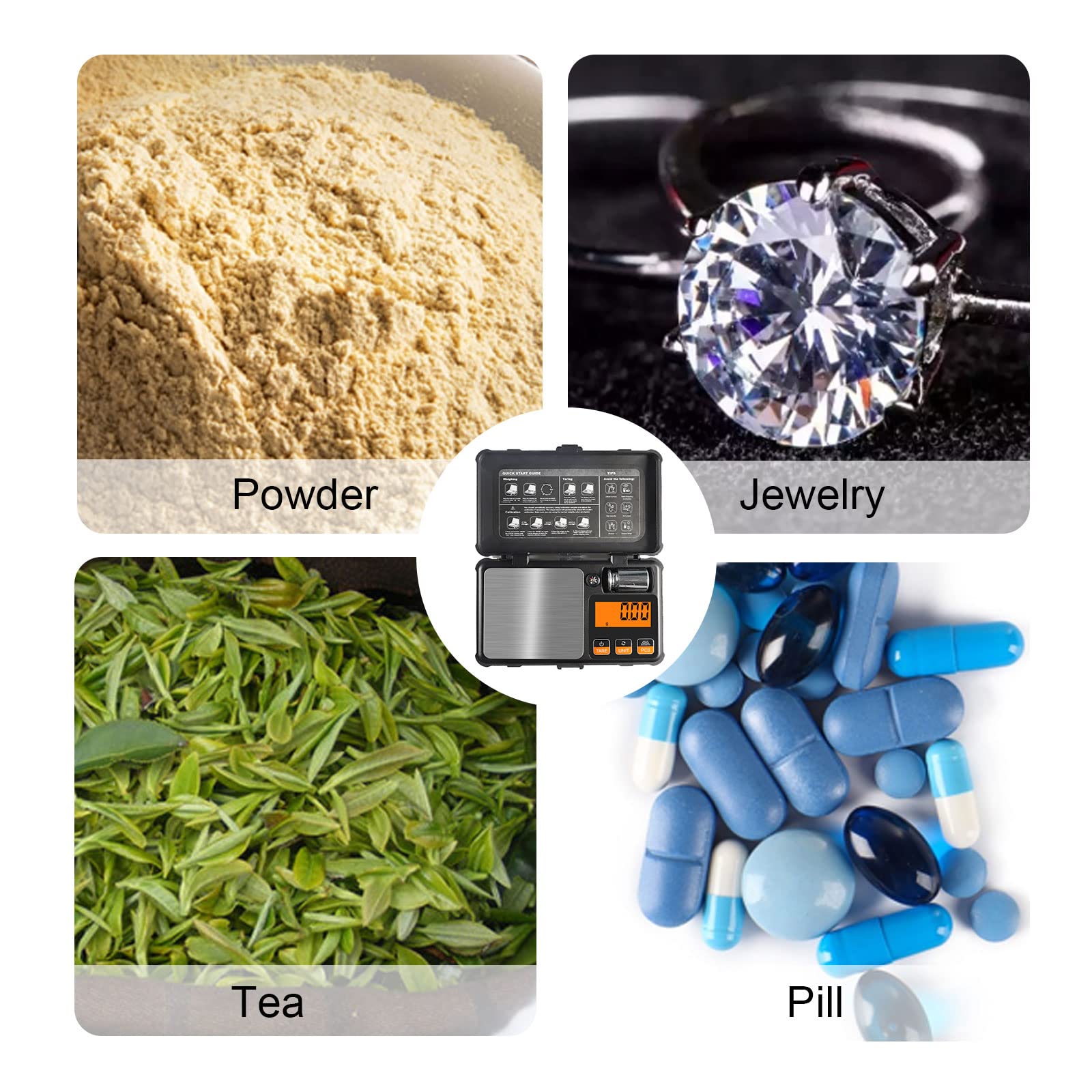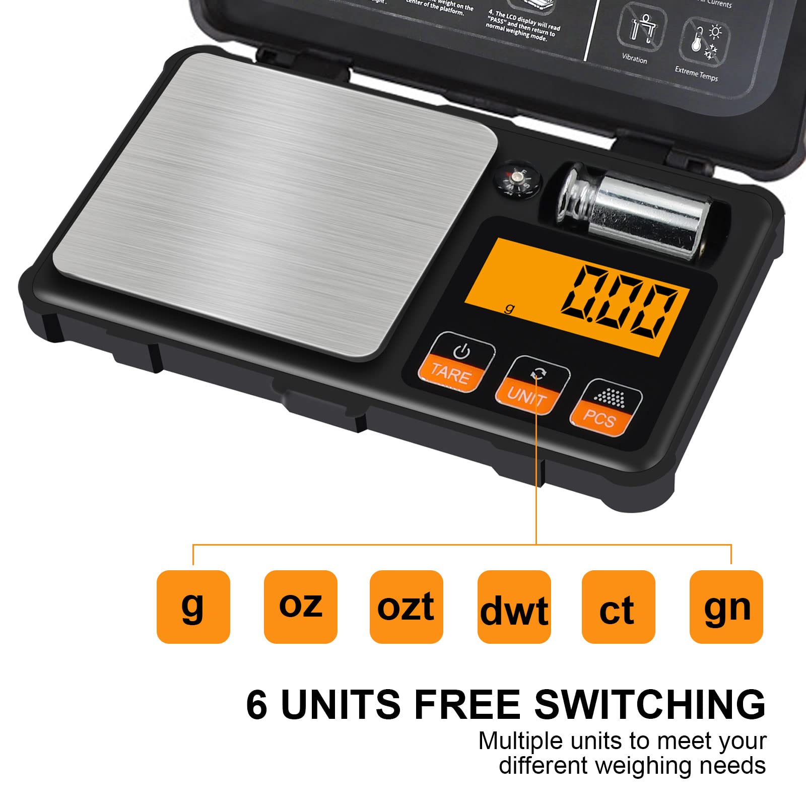 La balance numérique est équipée d'un capteur de gravité très sensibles, même pour de petites quantités. Elle est idéale pour les occasions qui nécessitent une grande précision, comme les bijoux, les pierres précieuses, les poudres, le thé, le tabac, etc. La balance a une plage de pesée de 0,03 g à 200 g et une précision de 0,01 g.