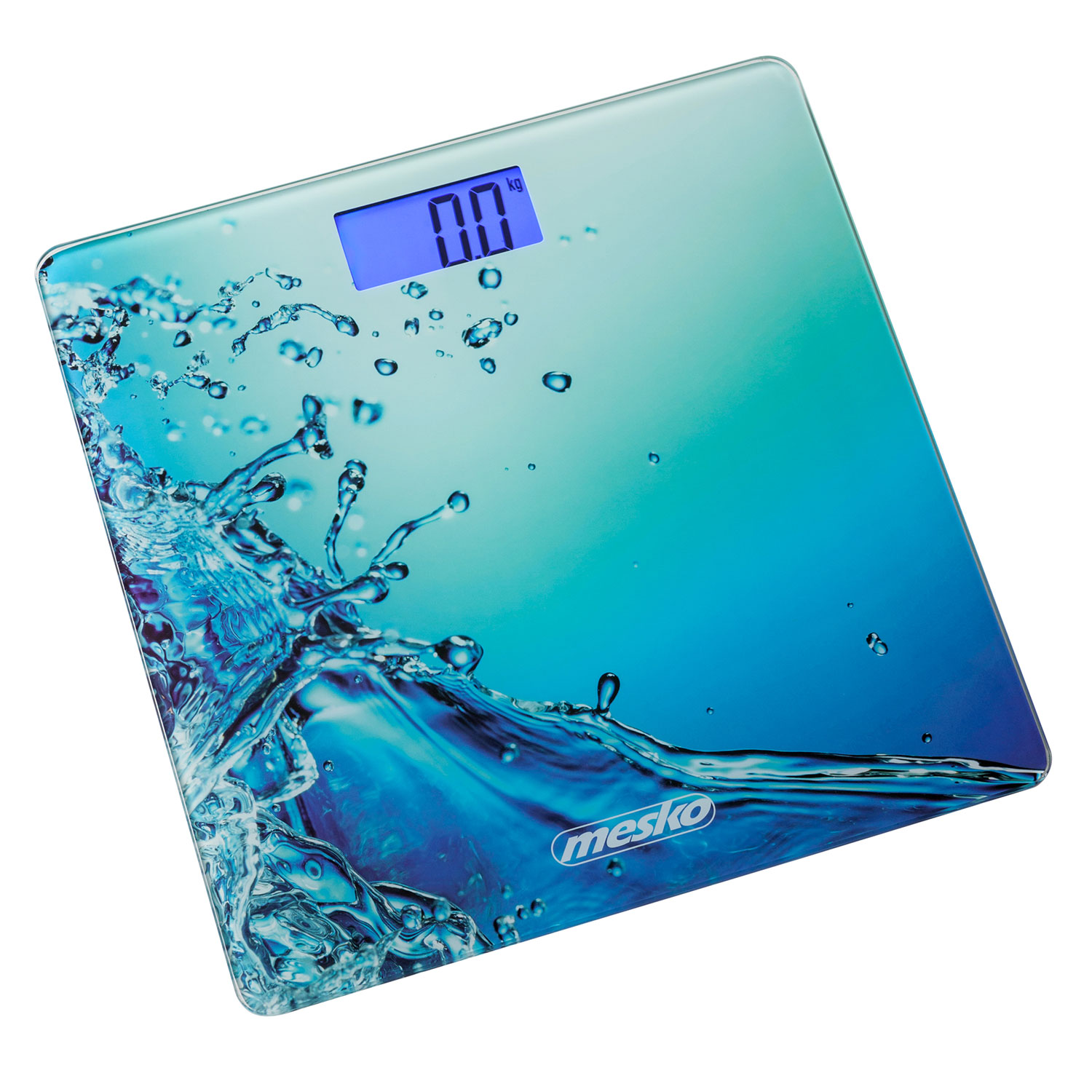 Balance Pese Personne Numérique Haute Précision, Design en Verre Écran LCD 150Kg Bleu MeskoMS8156
