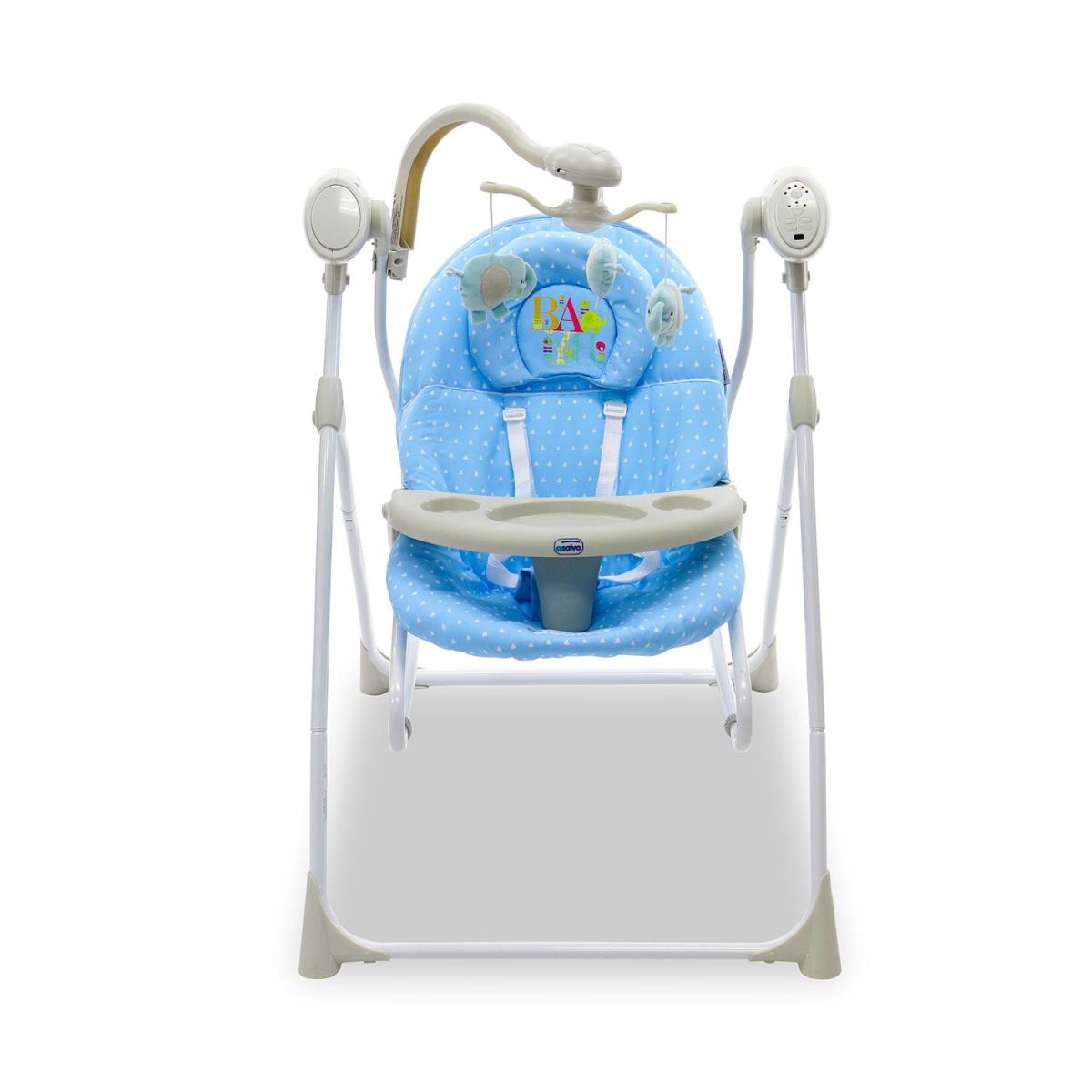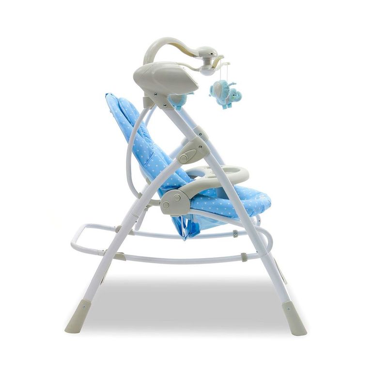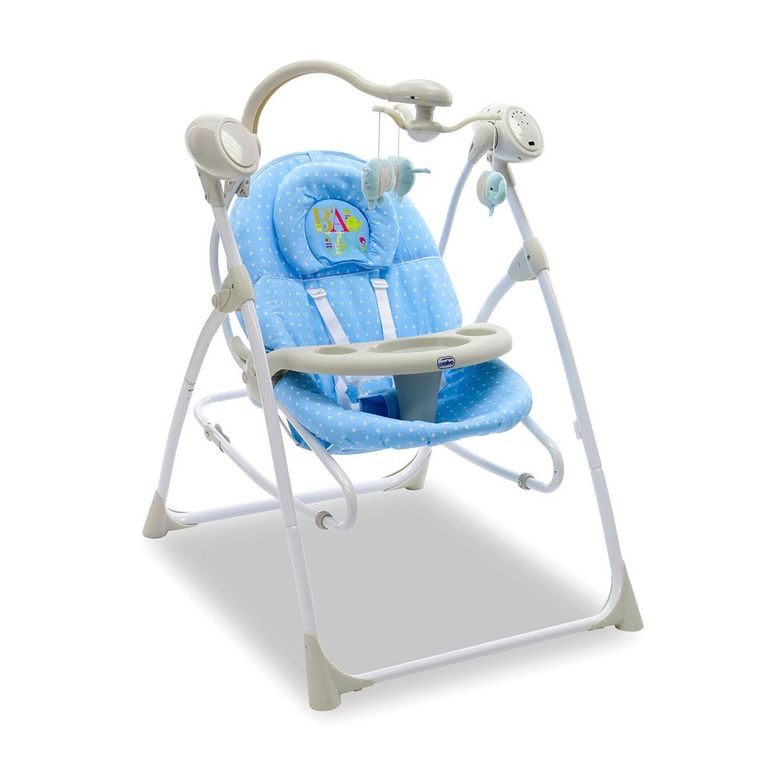 5 vitesses de balancement automatiques. 3 options de synchronisation avec arrêt automatique. 16 mélodies musicales. 5 sons naturels relaxants. Volume modulable. Chromothérapie : lumière avec différentes tonalités de couleur qui aide à calmer et détendre le bébé. Carrousel rotatif avec jouets. Siège facilement amovible. Système de contrôle de sécurité. Jusqu'à 9 kg. Rembourrage lavable en machine. Comprend un adaptateur secteur
